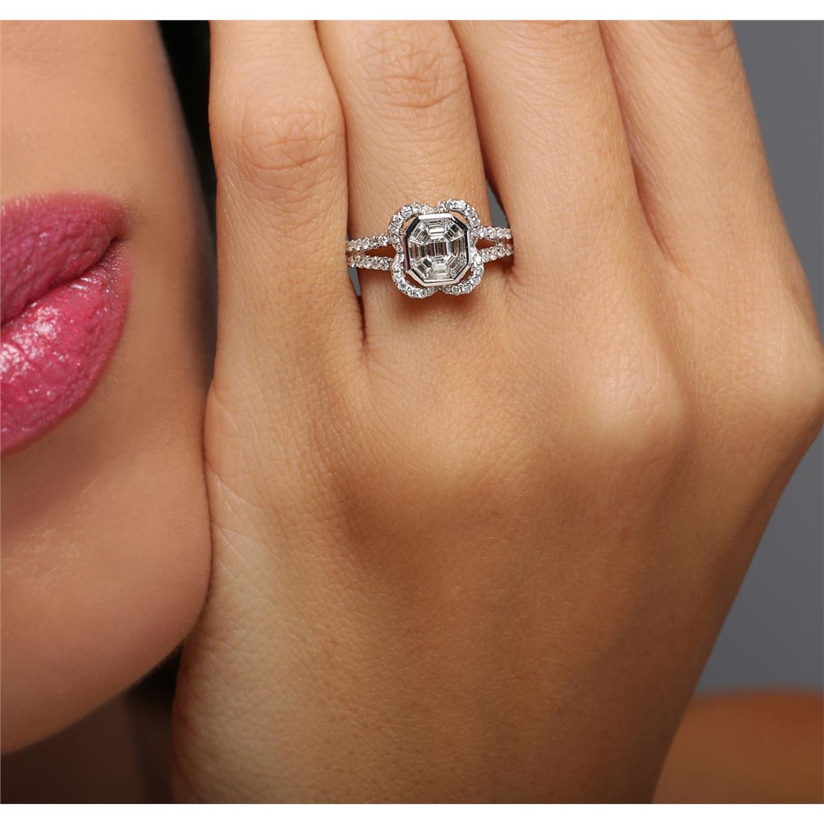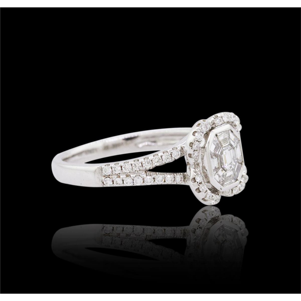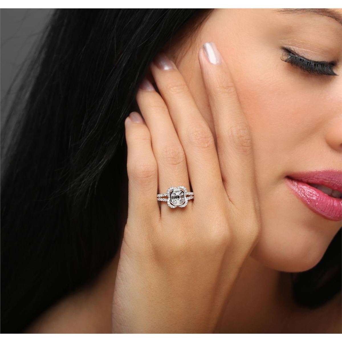 One ring featuring: 18KT white gold weighing 4.30 grams containing 65 round and baguette cut diamonds with a total weight of 0.71cts.