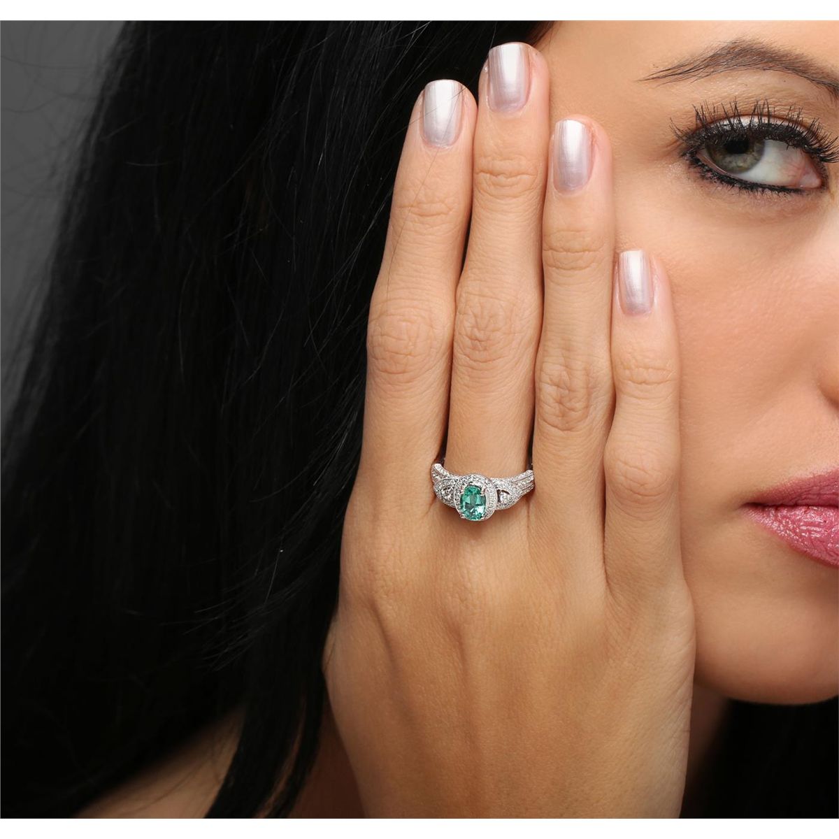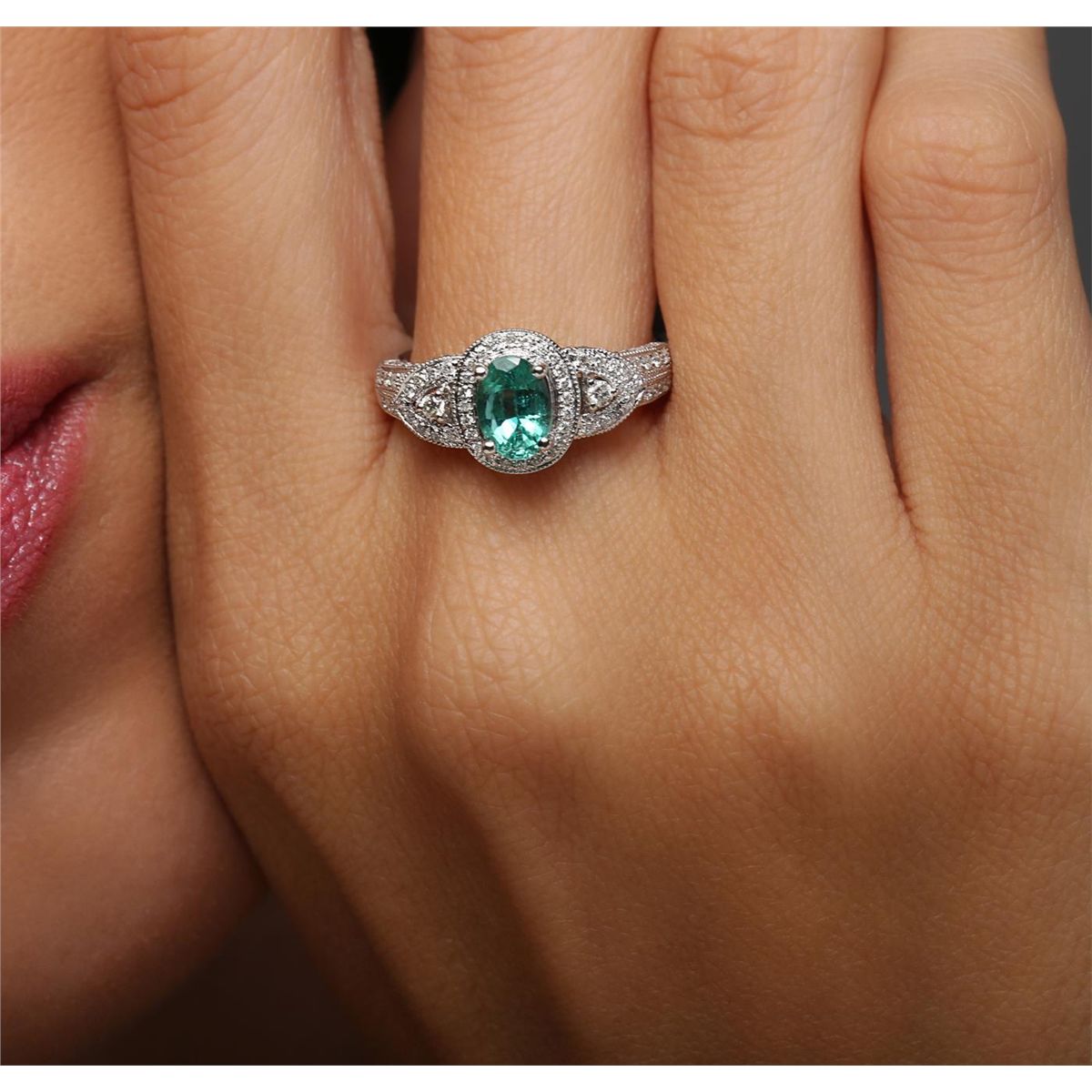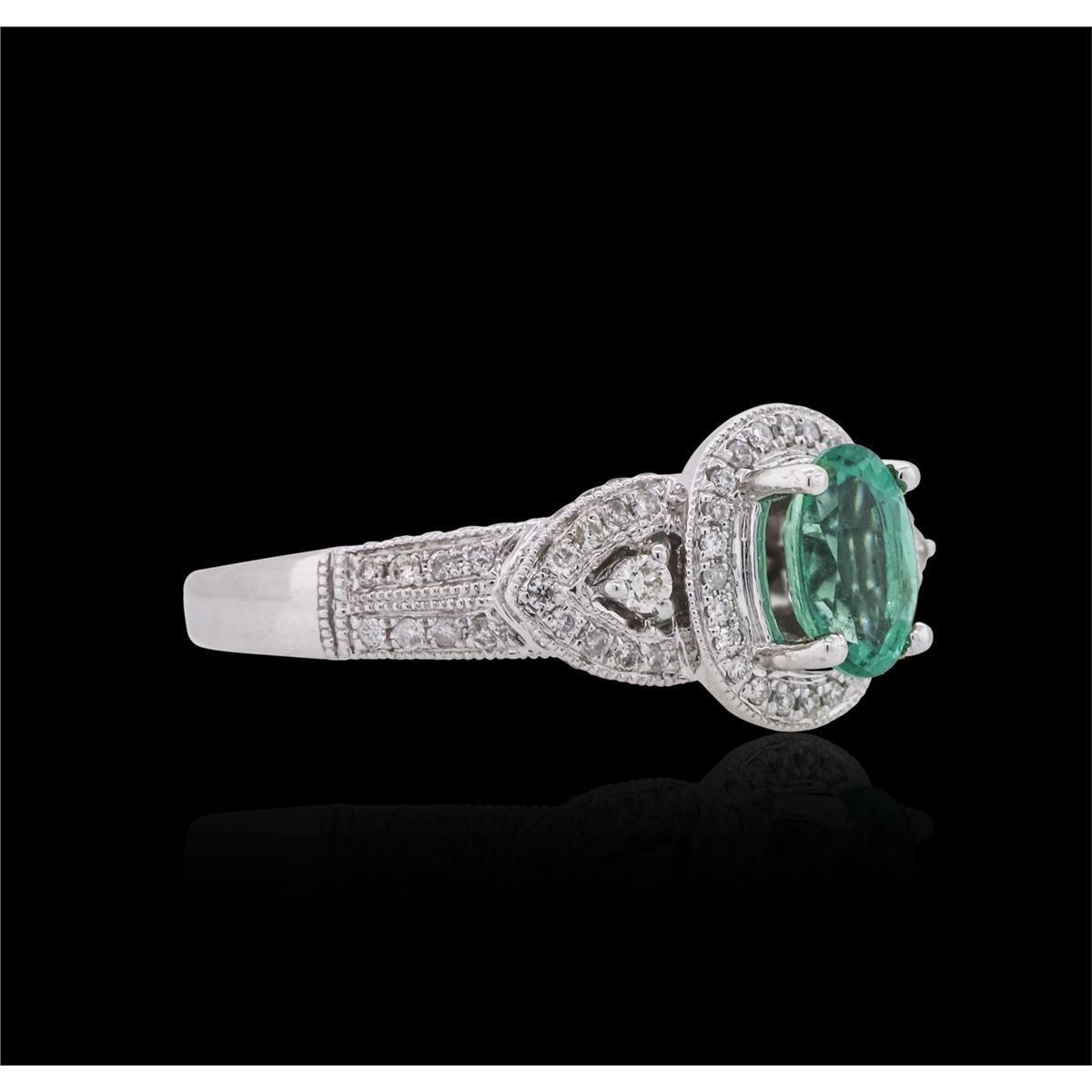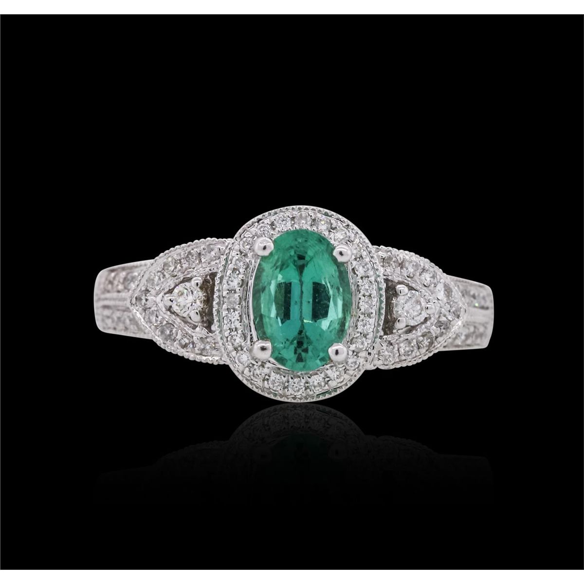 One ring featuring: 18KT white gold weighing 4.53 grams containing one emerald center stone with a total weight of 0.71ct and 122 round cut diamonds with a total weight of 0.48cts.