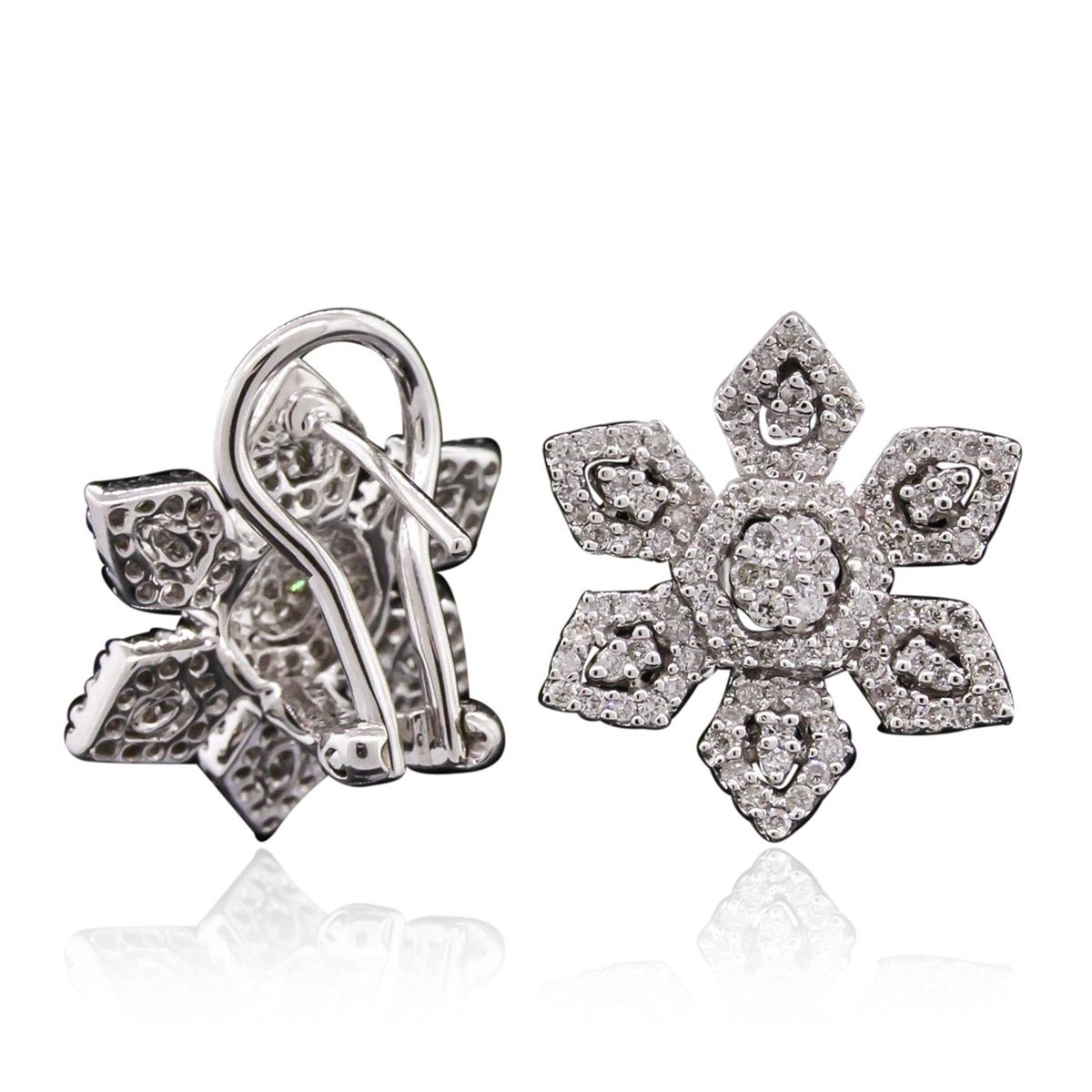 One pair of earrings featuring: 18KT white gold with a total weight of 5.96 grams, and diamonds with a total weight of 0.72ctw.
