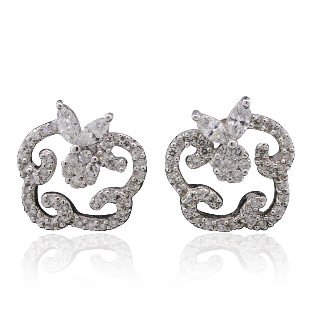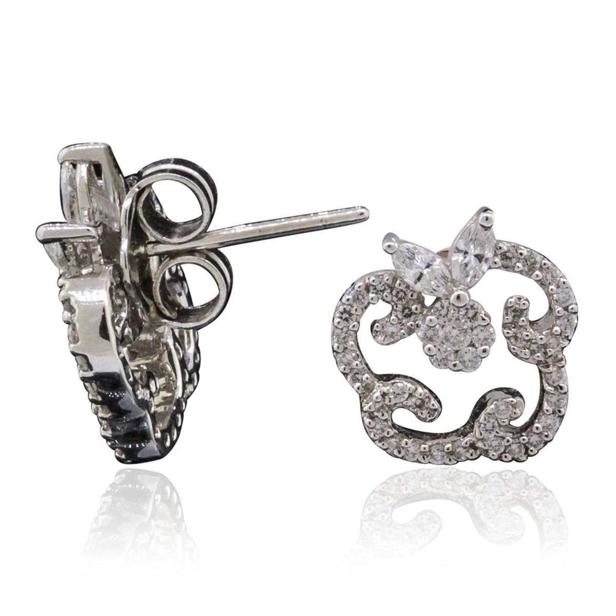 One pair of earrings featuring: 18KT white gold weighing 4.9 grams containing 82 brilliant cut diamonds and 4 marquise cut diamonds for a total weight of 0.82cts. .