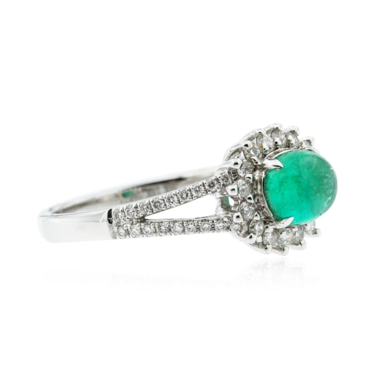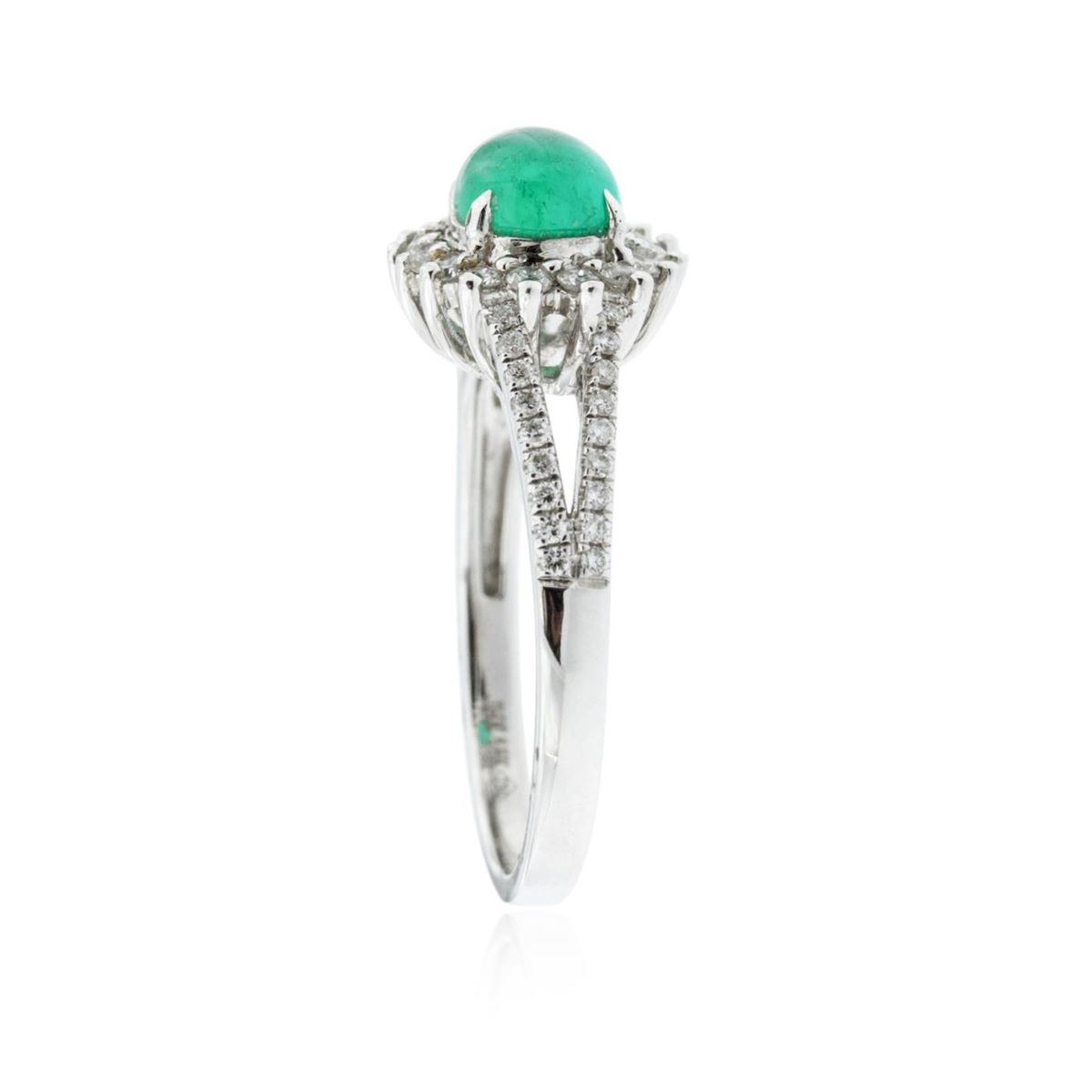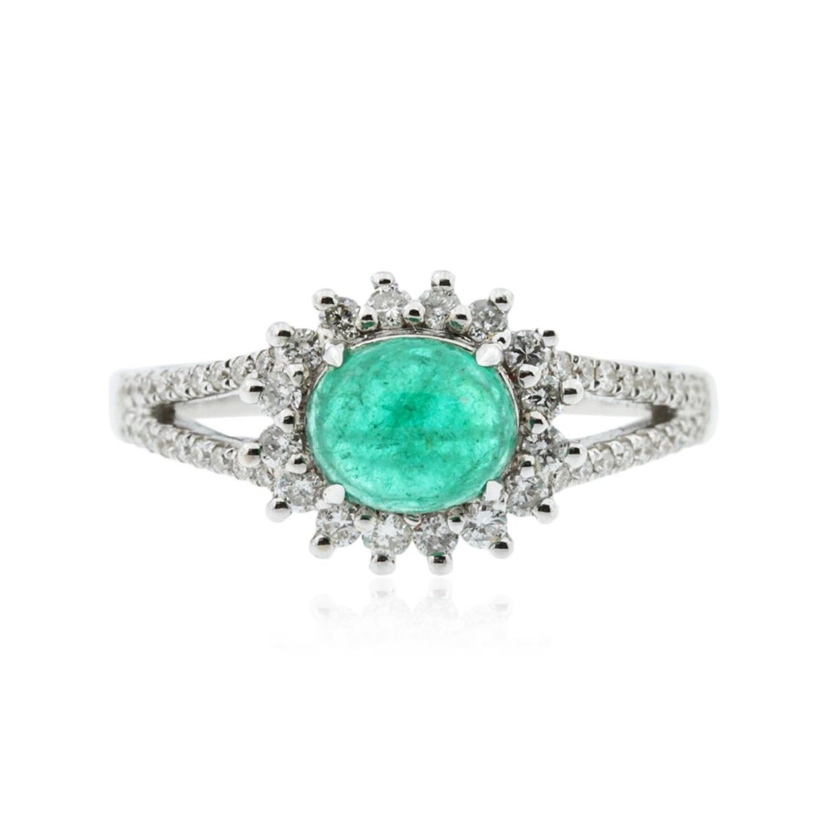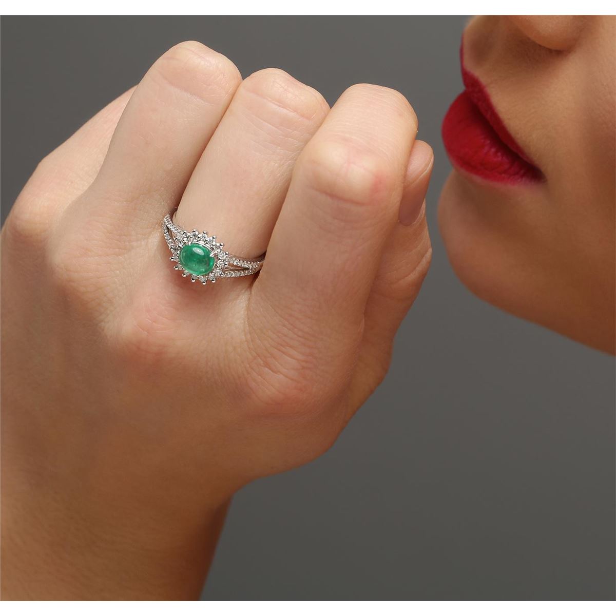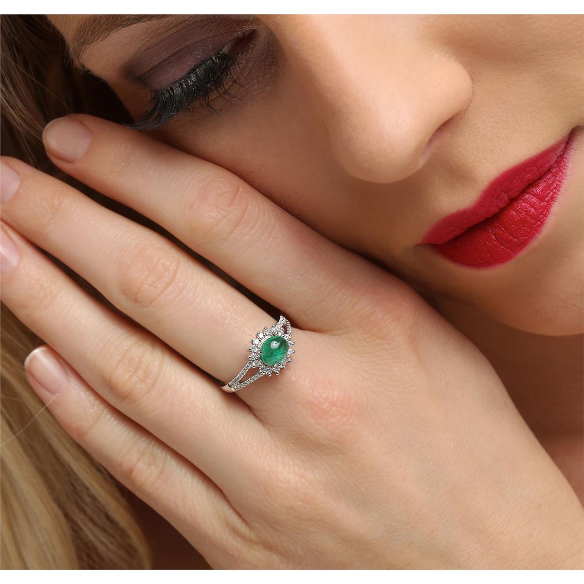 One ring featuring: 18KT white gold weighing 3.75 grams containing one emerald center stone with a total weight of 0.93ct and 52 round diamonds with a total weight of 0.35ct.
