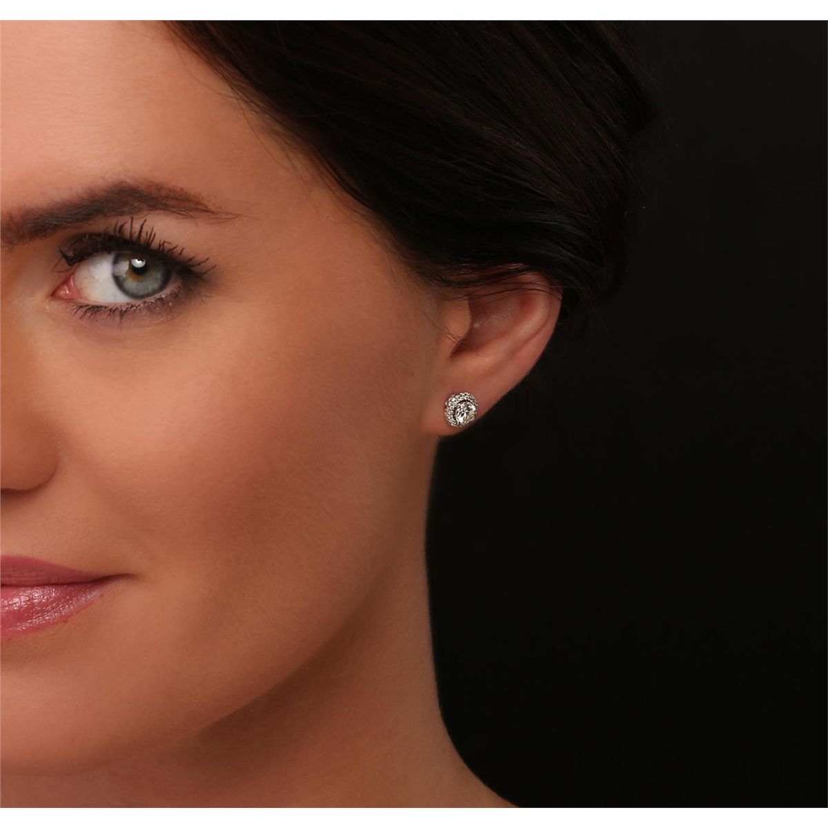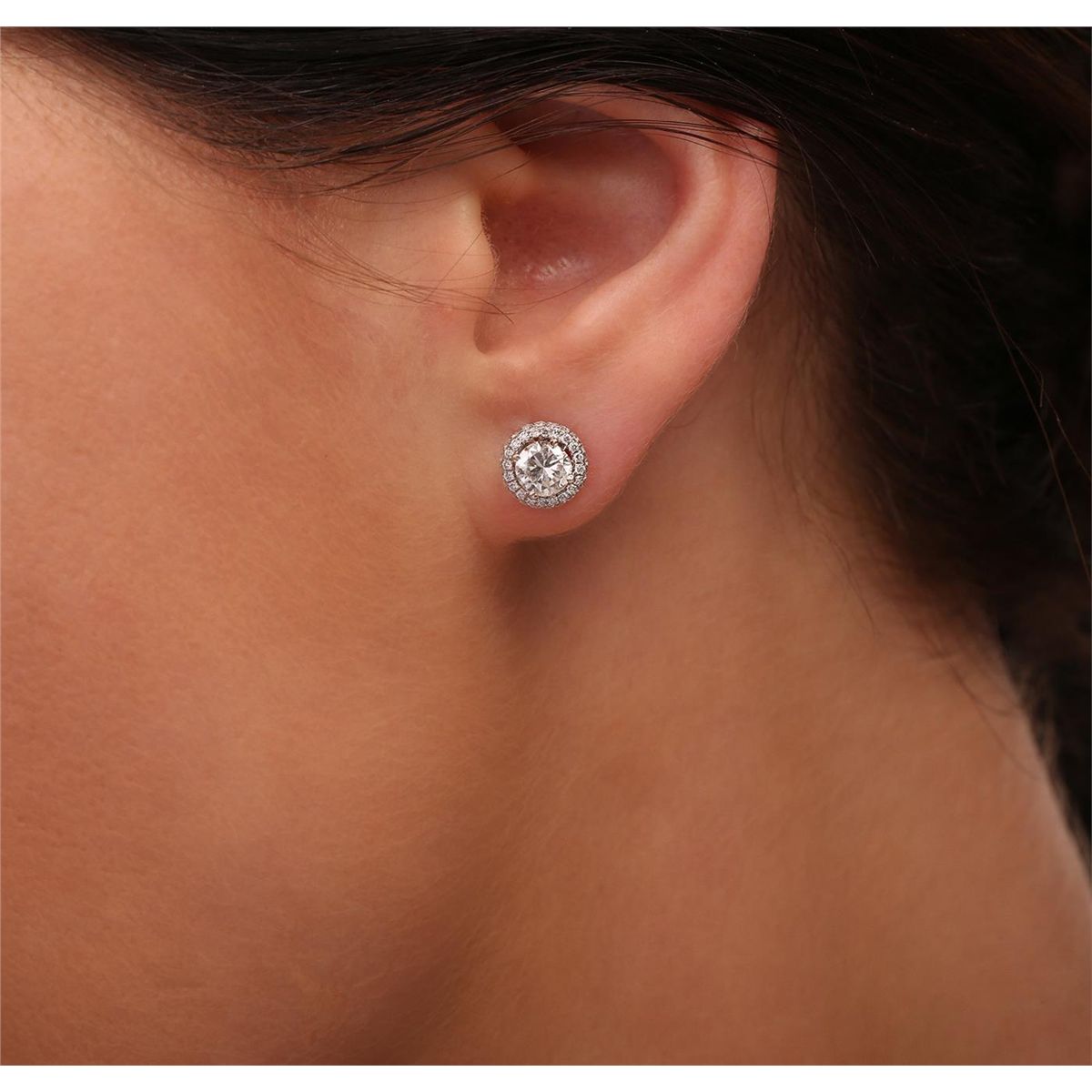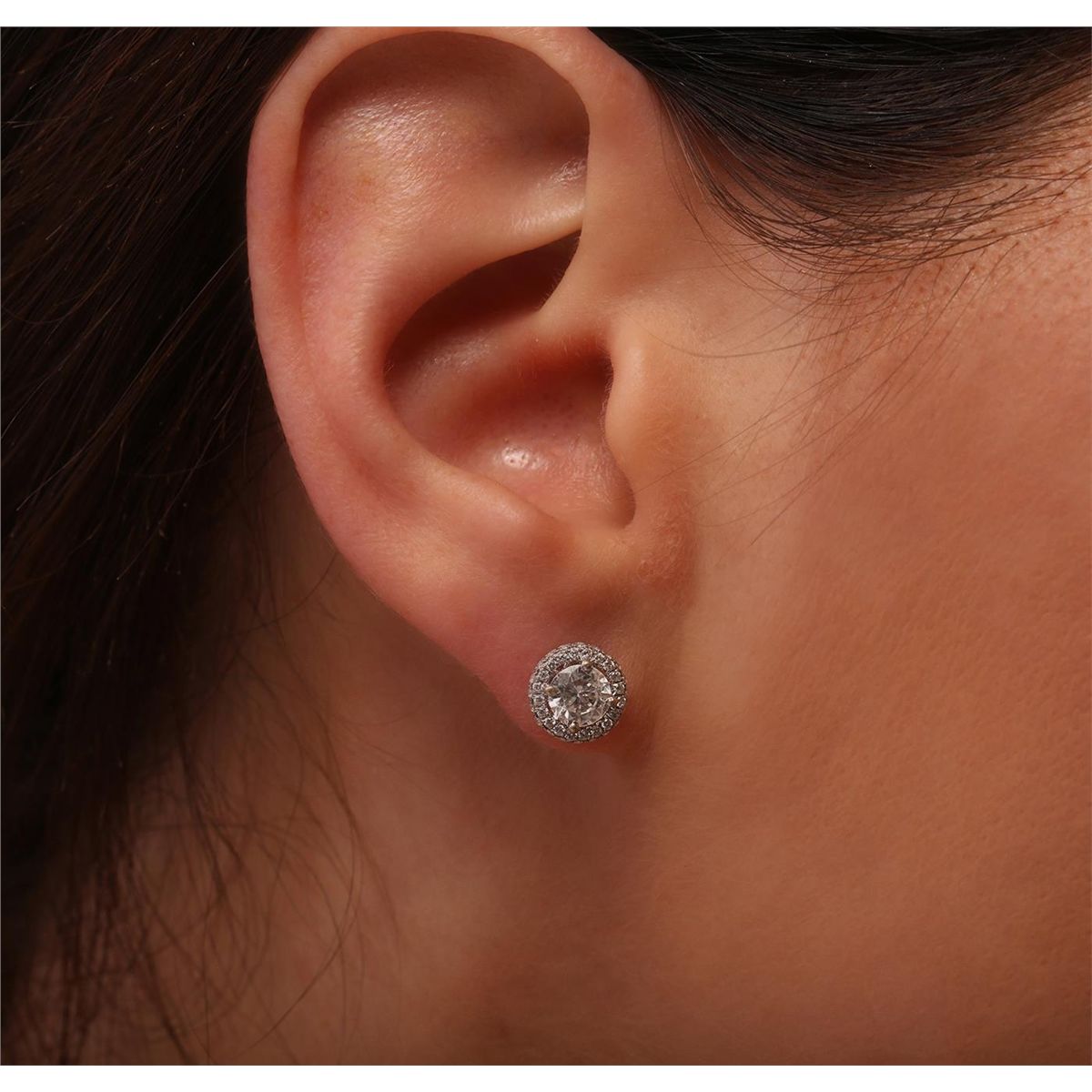 One pair electronically tested 18KT white gold Ladies combination cast & assembled stud earrings with friction posts with a bright polish finish. Condition is very good. Identified with markings of "585". Containing: Two prong set round brilliant cut diamonds, measuring 4.90 - 4.90 x 2.94mm (depth est.) approximate total weight of 2 Stones = 0.86ct. Clarity: SI-1 to SI-2. Color: I - J, Cut is Very Good. Forty prong set round brilliant cut diamonds, measuring 0.80 - 0.80 x 0.48mm (depth est.) approximate total weight of 40 Stones = 0.07ct. Clarity: I-1. Color: H - I, Cut is Good. All diamonds are graded in the mounting, unless otherwise stated. Total Weight of Diamonds 0.93ct. Total Weight of Earrings 2.30 grams. GGL Appraised at $7,025.00.