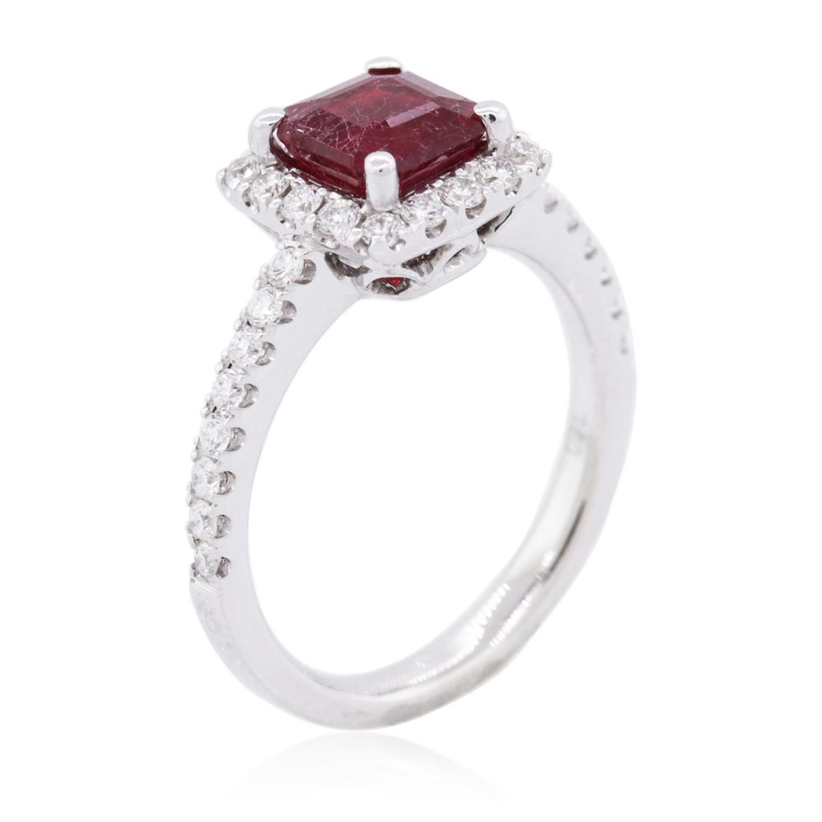 One ring featuring: 18KT white gold weighing 4.40 grams containing one ruby center stone with a total weight of 1.00ct and round cut diamonds with a total weight of 0.75cts.