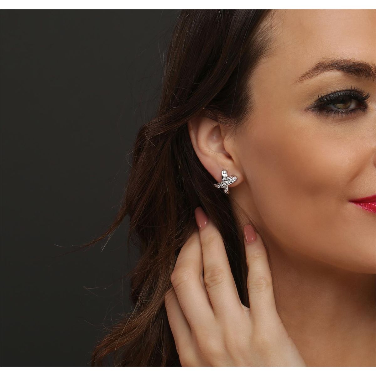 One pair of earrings featuring: 18KT white gold weighing 8.2 grams containing 26 brilliant cut diamonds with a total weight of 1.00cts. .