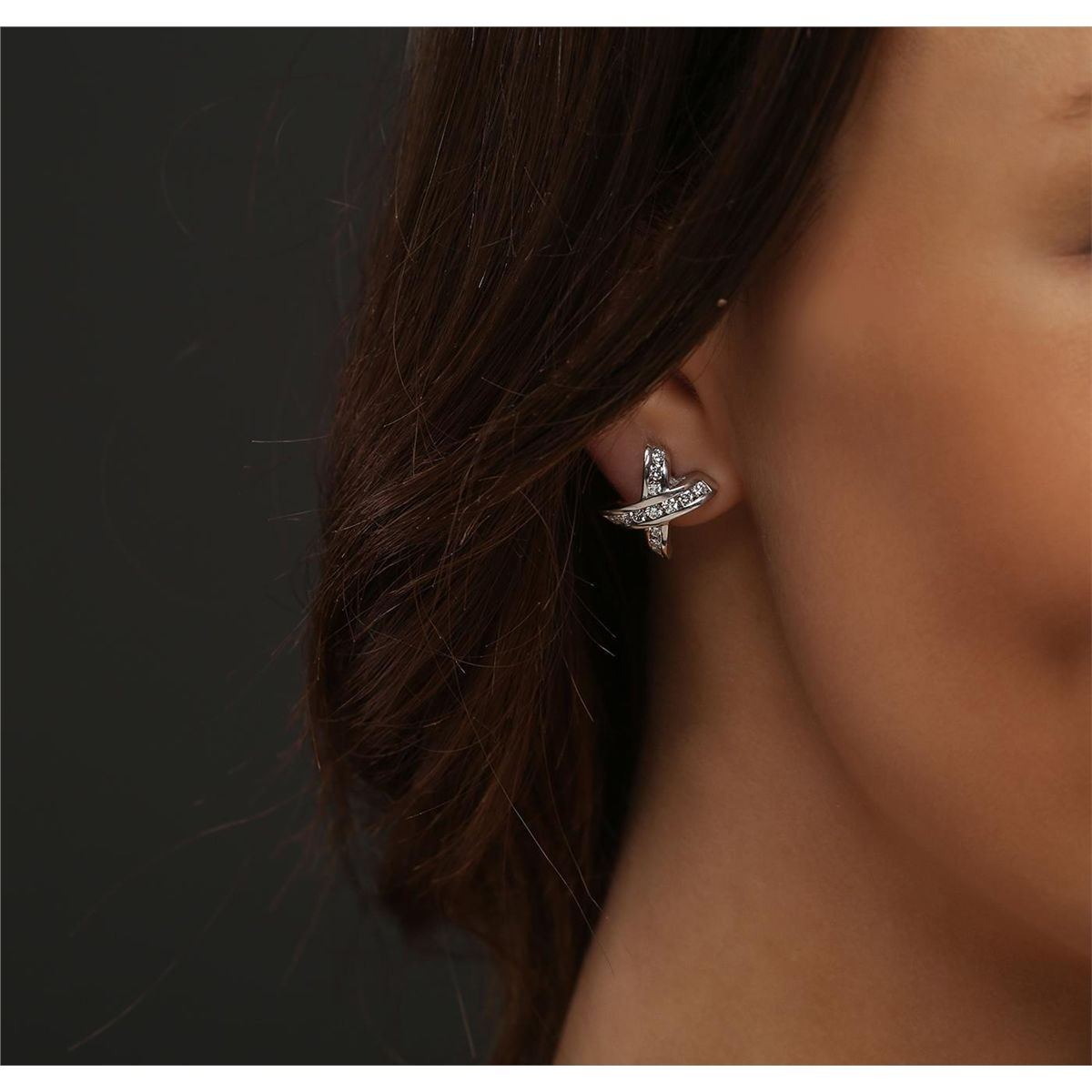 One pair of earrings featuring: 18KT white gold weighing 8.2 grams containing 26 brilliant cut diamonds with a total weight of 1.00cts. .