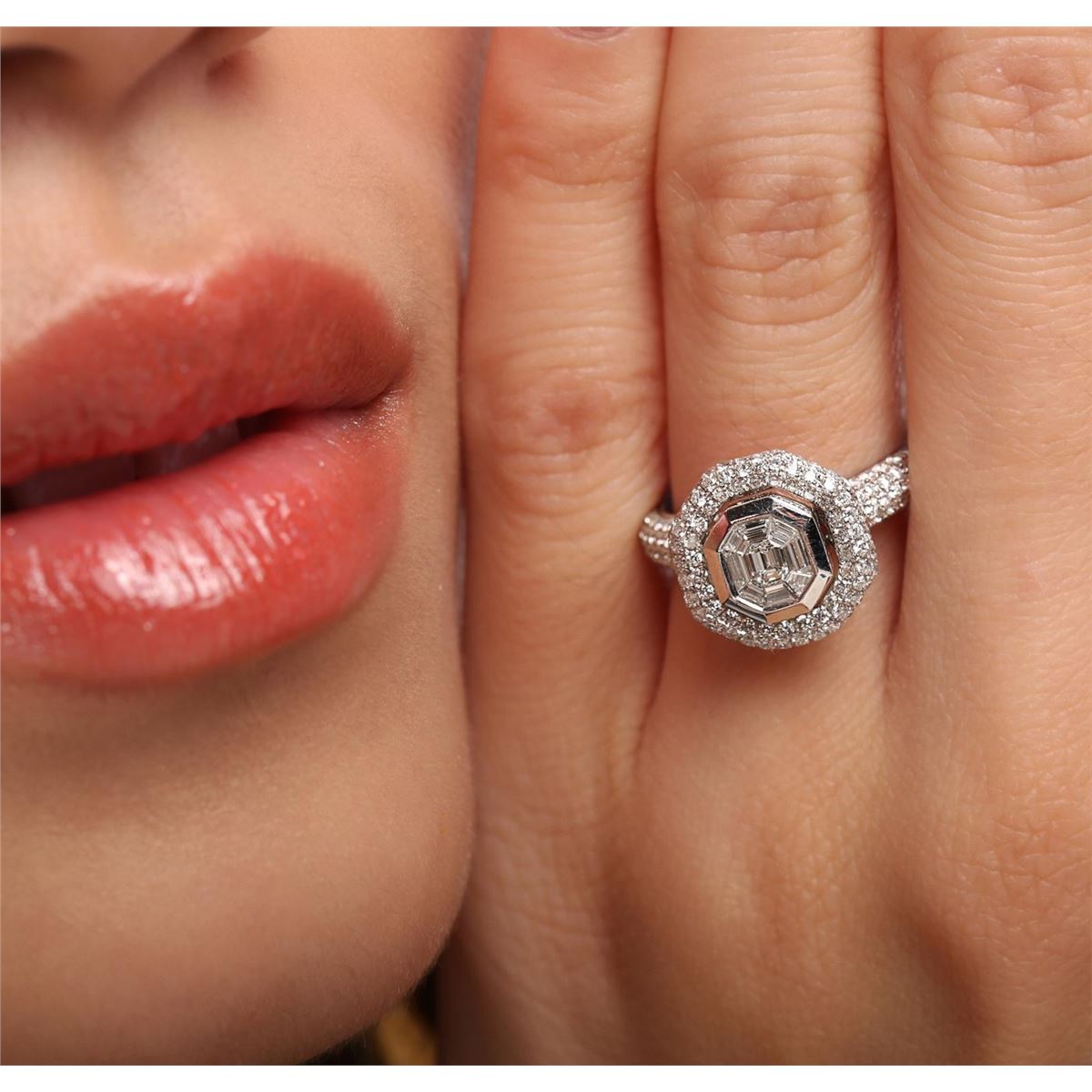One ring featuring: 18KT white gold weighing 5.87 grams containing 213 round and baguette diamonds with a total weight of 1.15cts.