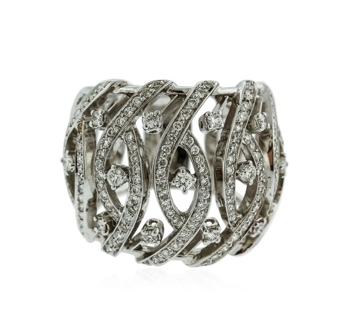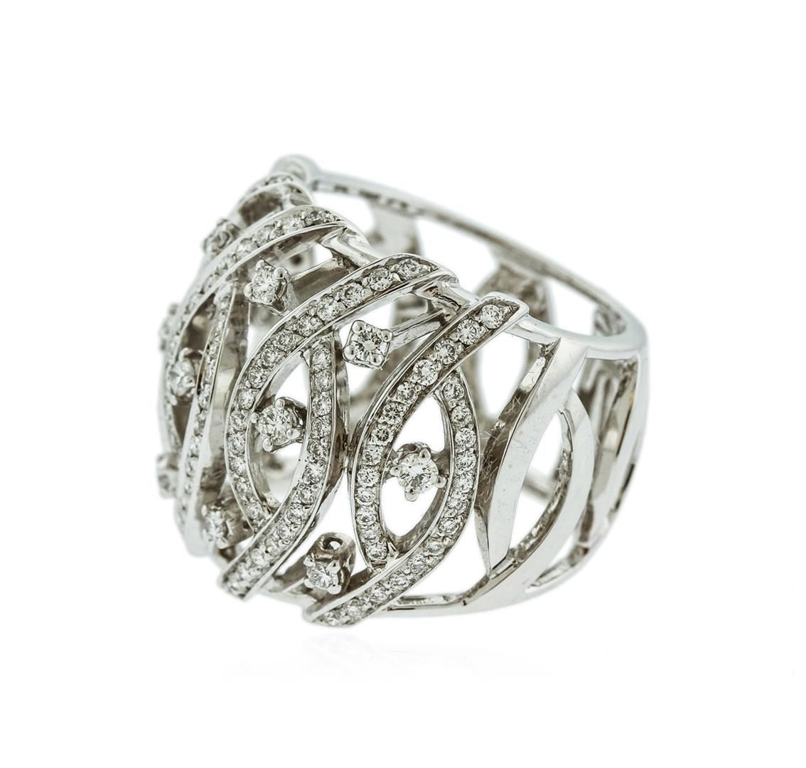 One electronically tested 18KT white gold ladies cast diamond ring with a tapered shank with a bright polish finish. Identified with markings of "750". Condition is new. Containing: Thirteen prong set round brilliant cut diamonds, measuring 2.00 - 2.00 x 1.20mm (depth est.) approximate total weight of 13 Stones = 0.38ct. Clarity: SI-1 to SI-2. Color: I - J, Cut is Good. One Hundred Thirty-Six prong set round brilliant cut diamonds, measuring 1.00 - 1.00 x 0.60mm (depth est.) approximate total weight of 136 Stones = 0.78ct. Clarity: SI-1 to SI-2. Color: I - J, Cut is Good. All diamonds are graded in the mounting, unless otherwise stated. Total Weight of Diamonds 1.16ct. Total Weight of Ring 13.40 grams. GGL Appraised at $6,045.00.