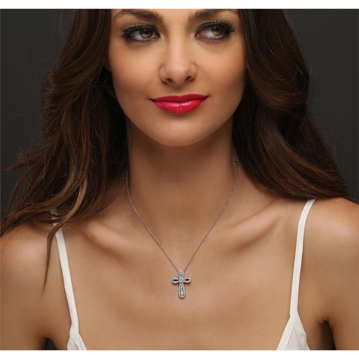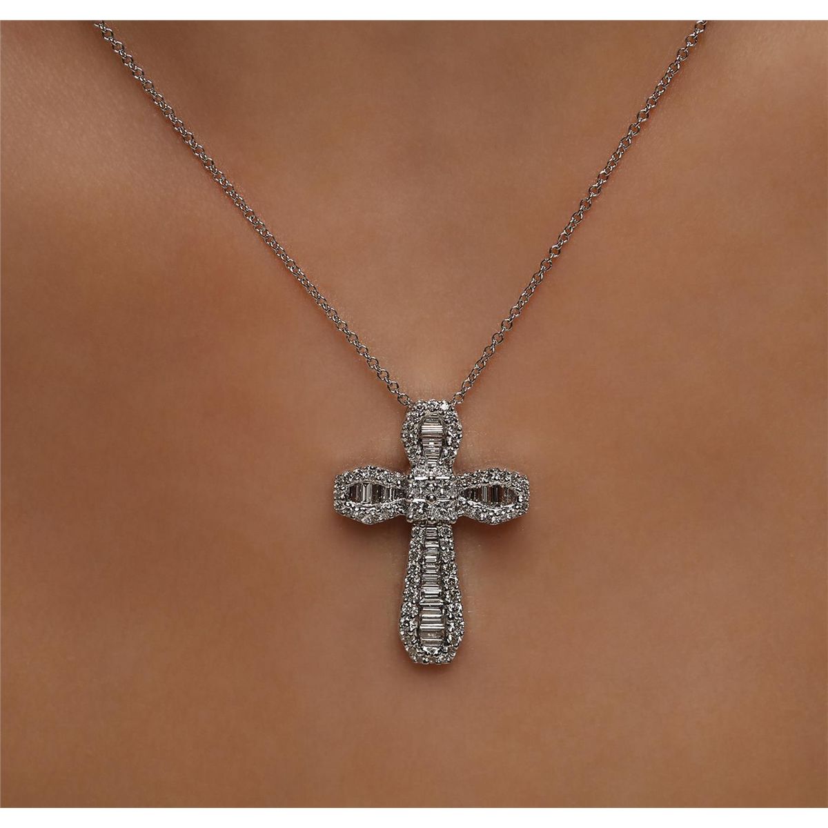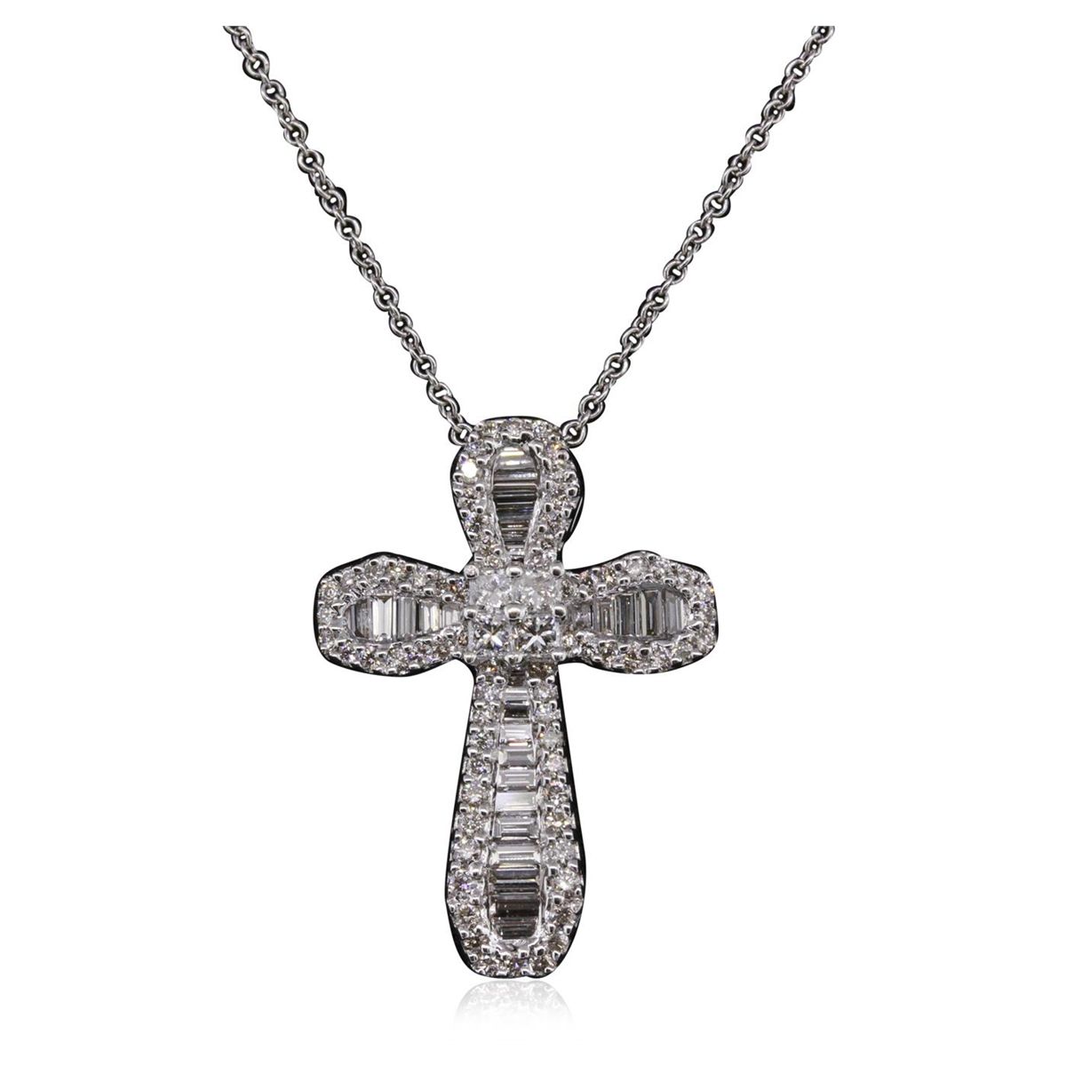 One cross pendant with chain featuring: 18KT white gold weighing 5.1 grams containing diamonds with a total weight of 1.28cts. .