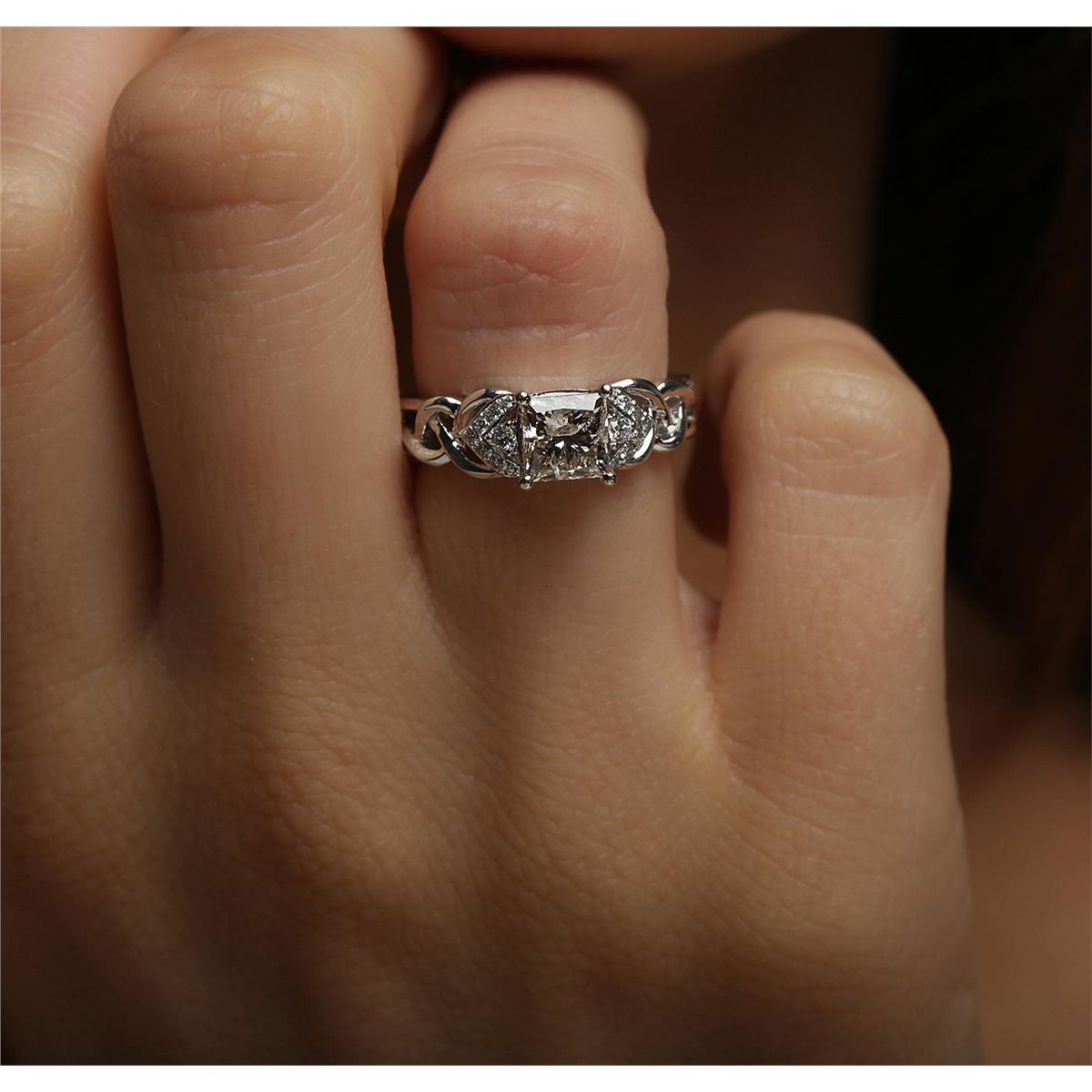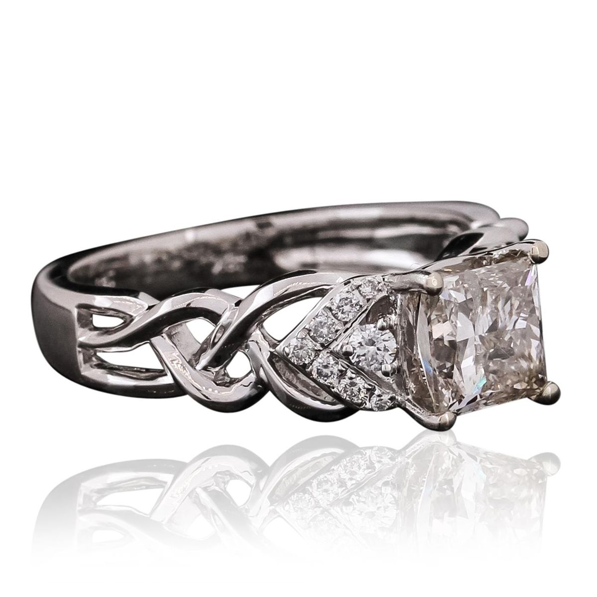 One electronically tested 18KT white gold ladies combination cast & assembled engagement ring with a bright polish finish. Identified with markings of "750". Condition is new. Containing: One prong set princess cut diamond, measuring 5.75 x 5.70 x 4.40mm (depth est.) approximate weight of 1.18ct. Clarity: I-1. Color: J, Cut is Good. Sixteen prong set round brilliant cut diamonds, measuring 1.80 - 1.10 x 0.87mm (depth est.) approximate total weight of 16 Stones = 0.16ct. Clarity: SI-1. Color: I - J, Cut is Good. All diamonds are graded in the mounting, unless otherwise stated. Total Weight of Diamonds 1.34ct. Total Weight of Ring 4.90 grams. GGL Appraised at $17,130.00.