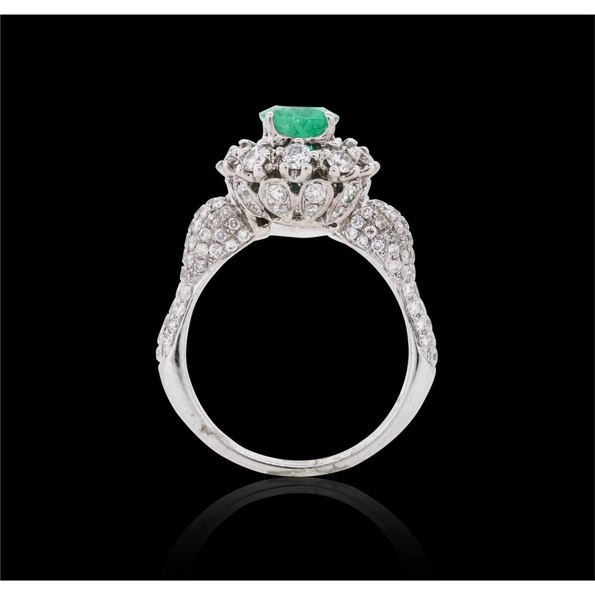 One ring featuring: 18KT white gold weighing 6.00 grams containing one emerald center stone with a total weight of 1.35ct and 128 round cut diamonds with a total weight of 1.25cts.