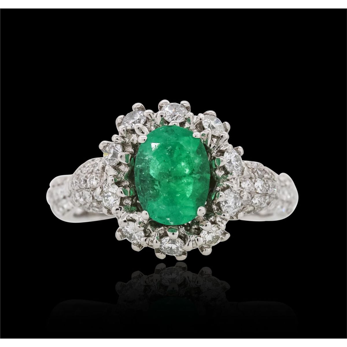 One ring featuring: 18KT white gold weighing 6.00 grams containing one emerald center stone with a total weight of 1.35ct and 128 round cut diamonds with a total weight of 1.25cts.