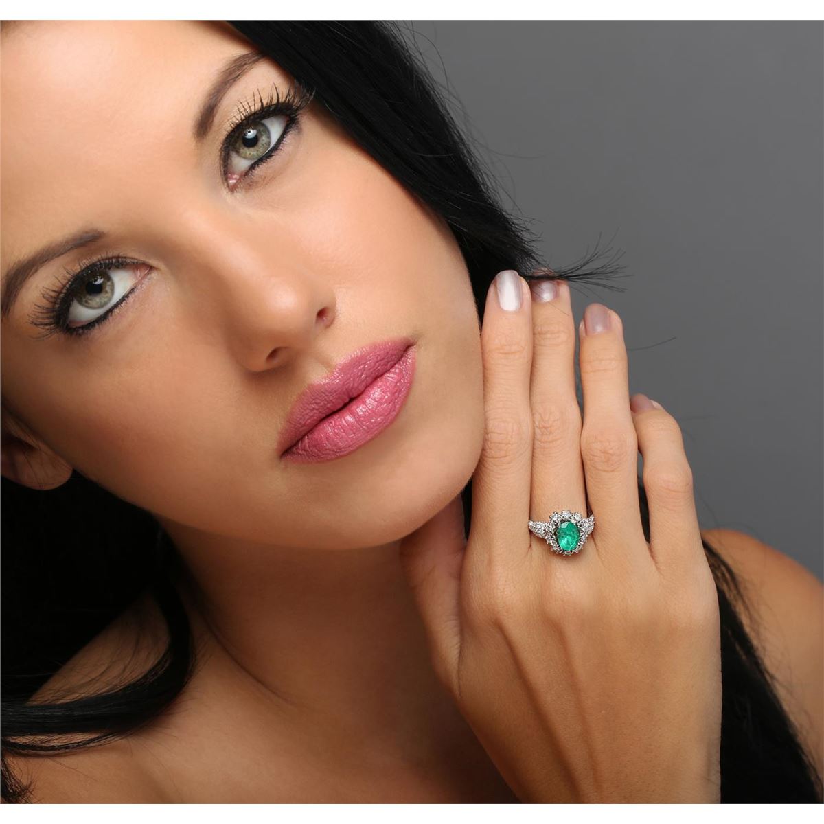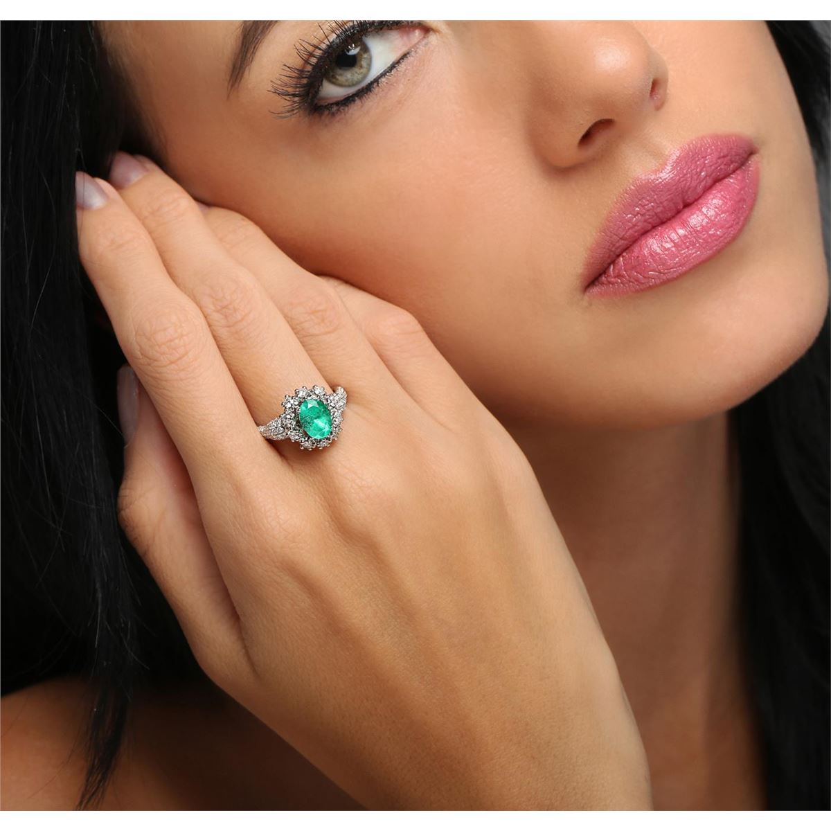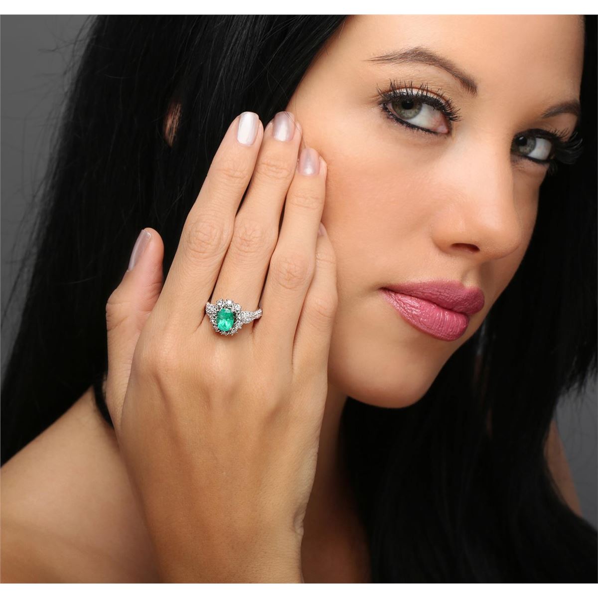 One ring featuring: 18KT white gold weighing 6.00 grams containing one emerald center stone with a total weight of 1.35ct and 128 round cut diamonds with a total weight of 1.25cts.