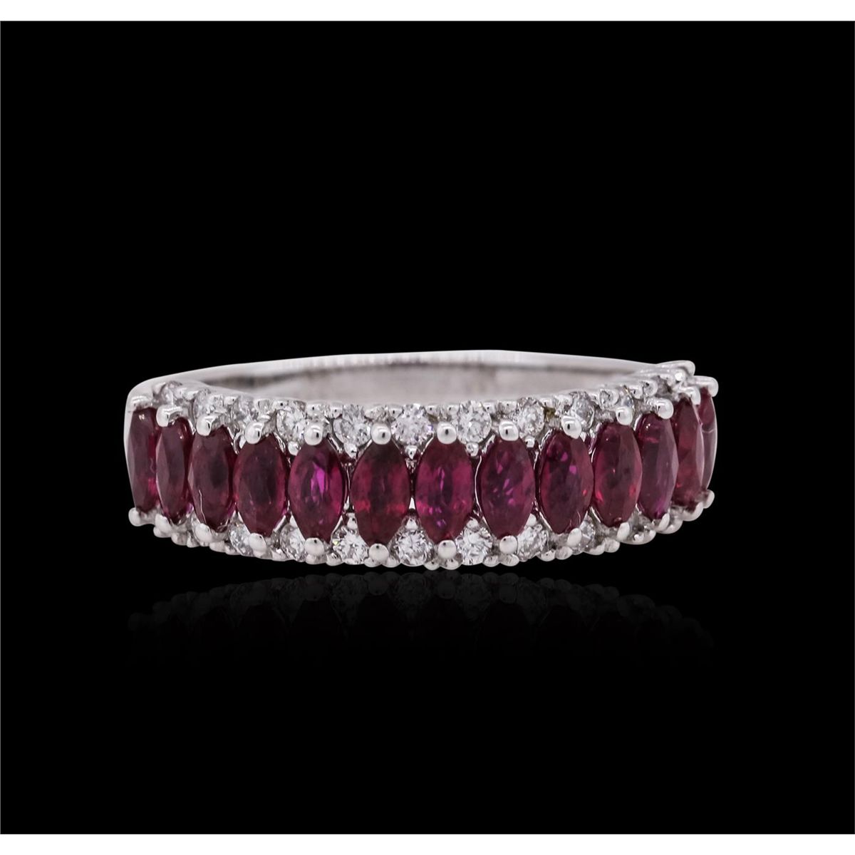 One ring featuring: 18KT white gold weighing 4.10 grams containing rubies with a total weight of 1.36cts and 24 brilliant cut diamonds with a total weight of 0.34cts.