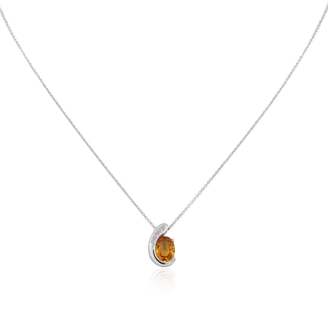 One pendant with chain featuring: 18KT white gold weighing 1.69 grams containing one yellow sapphire center stone with a total weight of 1.46ct and diamonds with a total weight of 0.05ct.