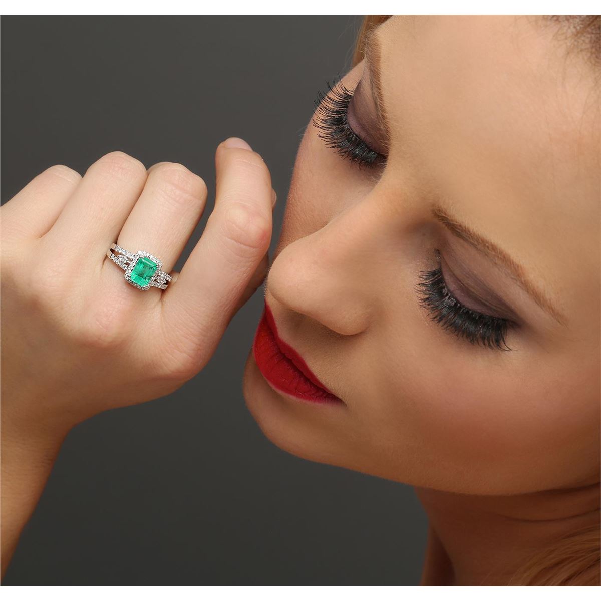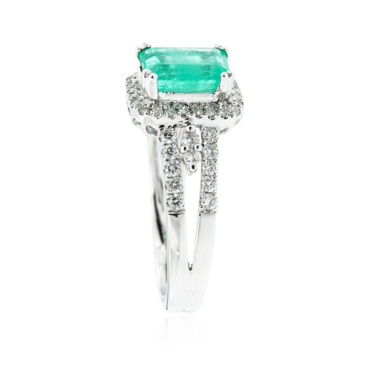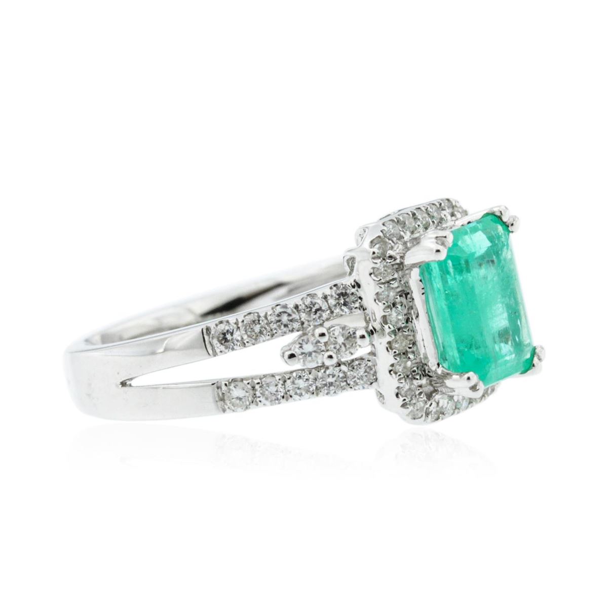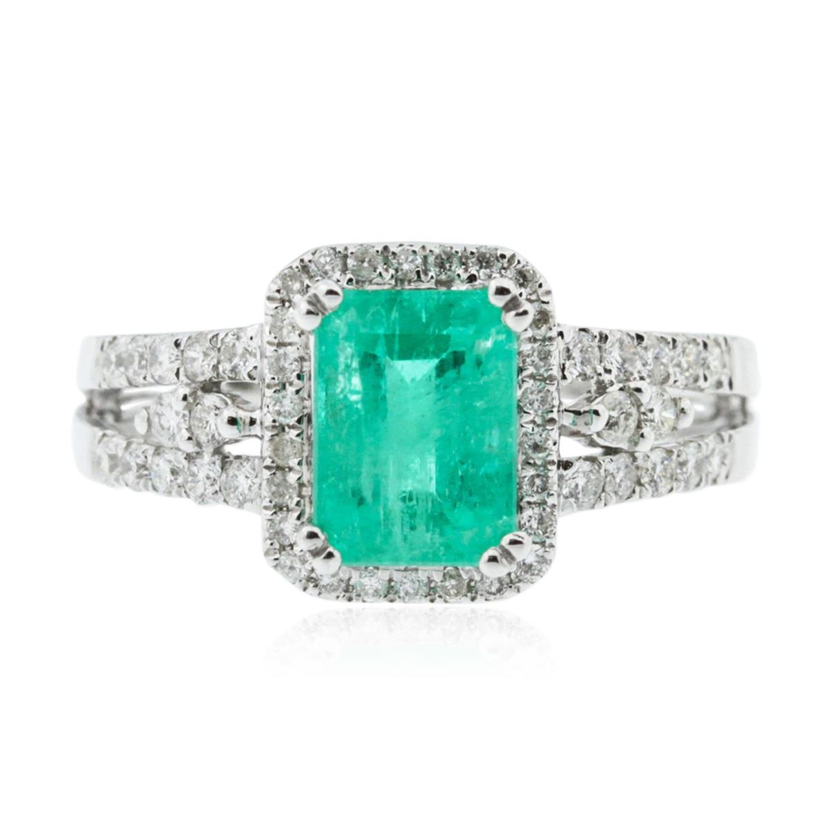 One ring featuring: 18KT white gold weighing 4.65 grams containing one emerald center stone with a total weight of 1.48ct and round diamonds with a total weight of 0.47ct.