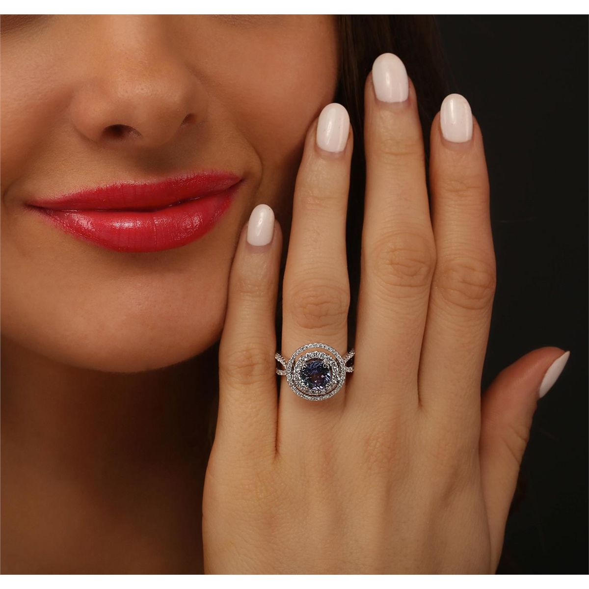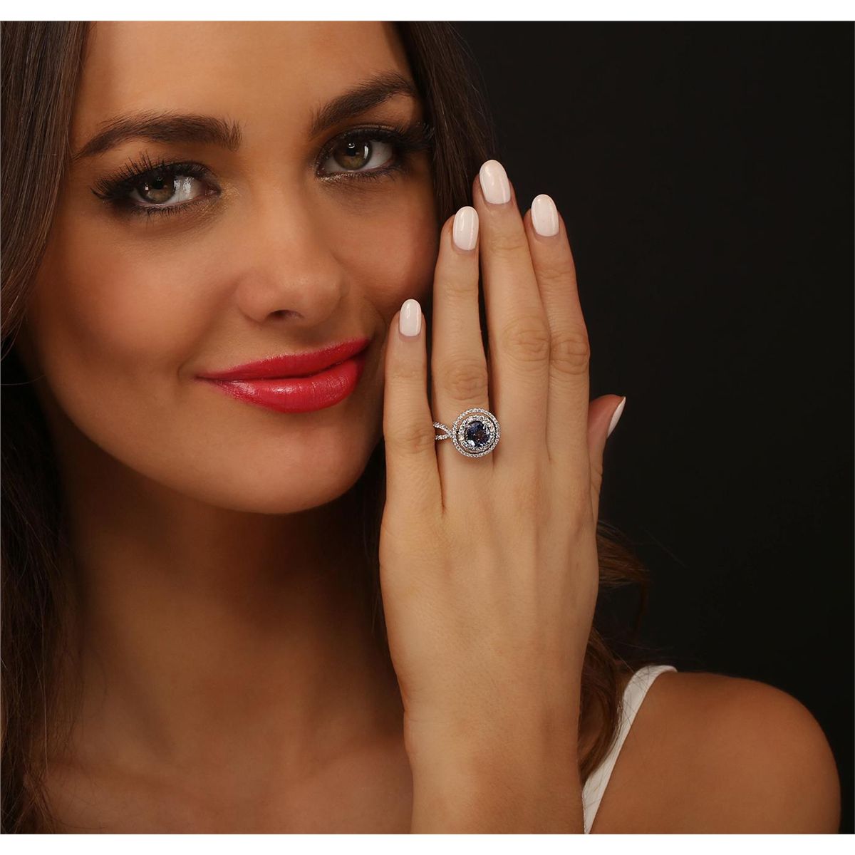 One electronically tested 18KT white gold ladies cast tanzanite and diamond ring with a bright polish finish. Condition is new, good workmanship. The featured tanzanite is set within a two tiered diamond lattice gallery, supported by diamond set split shoulders and completed by a three millimeter wide band. Identified with markings of "18K". Containing: One prong set round mixed cut natural tanzanite, measuring 7.30 - 7.30 x 4.05 mm, 6%. bulge factor, approximate weight of 1.53ct., clarity is eye clean, type I, medium, very slightly grayish, violet color, (GIA V 5/3), cut is good. Transmitting light with no distortion, transparent. Graded in the setting. Tanzanite is a very rare gemstone that is only found in the country of Tanzania. Originally discovered in 1967. Tiffany & Company, named the stone Tanzanite. It is found in the Usumburu Mountains that border the Umba Valley of northern Tanzania. Tanzanite occurs in gray, brown, violet, blue, reddish-purple, & green. The gem is interesting because of its exceptional pleochroism. Rotated in different directions a tanzanite will exhibit multiple changes of color. Tanzanite has a low tolerance to ultrasonic cleaning, and should not be cleaned using this method. Eighteen prong set round brilliant cut diamonds, measuring 1.70 - 1.60 x 0.99mm (depth est.) approximate. Total Weight of 18 Stones = 0.41ct. Graded in the setting. Clarity: SI-1 to SI-2. Color: F - H Ninety-Six prong set round brilliant cut diamonds, measuring 1.50 - 1.00 x 0.75mm (depth est.) approximate. Total Weight of 96 Stones = 0.78ct. Graded in the setting. Clarity: SI-1 to I-1. Color: F - H. Total Weight of Colored Stones 1.53ct. Total Weight of Diamonds 1.19ct. Total Weight of Ring 6.50 grams. AIG Appraised at $7,890.00.