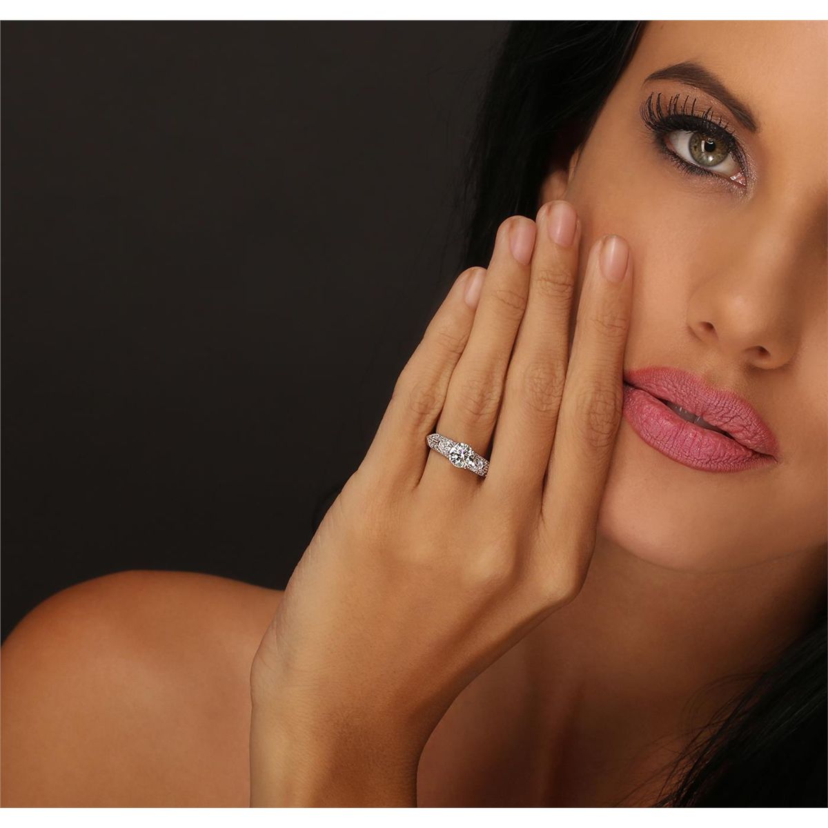One electronically tested 18KT white gold Ladies combination cast & assembled engagement ring with a bright polish finish. Condition is new. Identified with markings of "750". Containing: One prong set round brilliant cut diamond, measuring 6.43 - 6.41 x 4.44mm (depth est.) approximate weight of 1.12ct. Clarity: SI-1. Color: M, Cut is Good. Two prong set marquise shaped cut diamonds, measuring 3.50 x 2.50 x 1.58mm (depth est.) approximate. Total Weight of 2 Stones = 0.16ct. Clarity: SI-1 to SI-2. Color: F - G, Cut is Good. Thirty-Six bead set round brilliant cut diamonds, measuring 1.50 - 1.30 x 0.84mm (depth est.) approximate. Total Weight of 36 Stones = 0.36ct. Clarity: SI-2 to I-1. Color: H - I, Cut is Good. Total Weight of Diamonds 1.63ct. Total Weight of Engagement Ring 4.70 grams. GGL Appraised at $16,110.00.