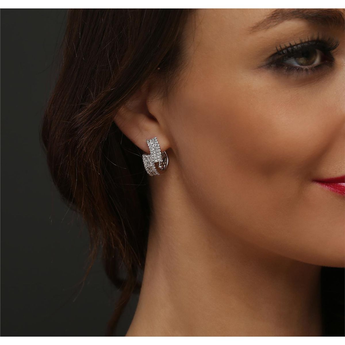 One pair of earrings featuring: 18KT white gold weighing 9.1 grams containing brilliant cut diamonds, princess cut diamonds, and baguette cut diamonds for a total weight of 1.72cts. .