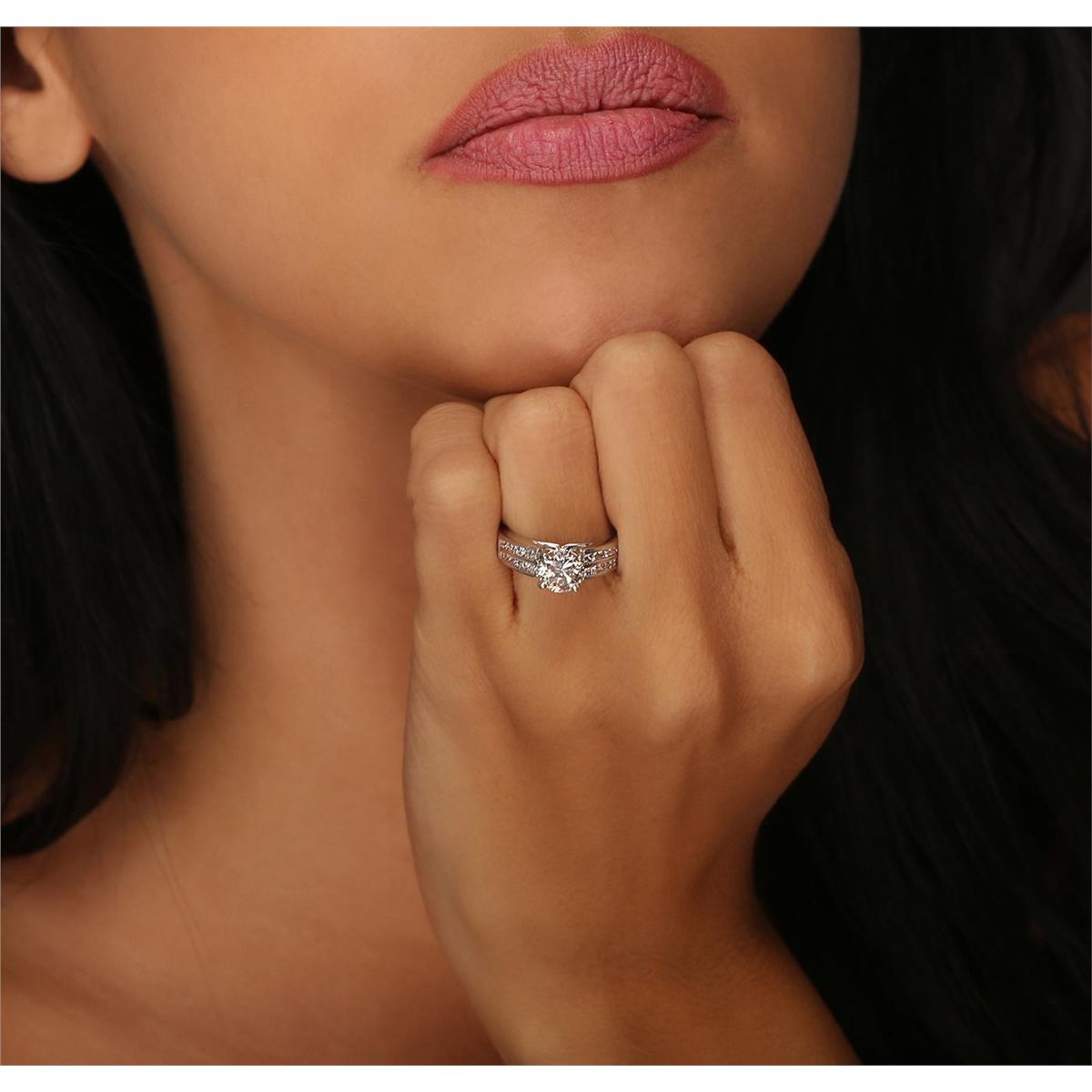 One electronically tested 18KT white gold ladies cast & assembled diamond unity ring. The featured diamond is supported by diamond set shoulders and completed by a three millimeter wide band. Bright polish finish with milgrain detailing throughout. Trademark is COAST. Identified with markings of "18K". Condition is good. Containing: One prong set round brilliant cut diamond, measuring 6.75 - 6.70 x 4.40mm (depth est.) approximate weight of 1.31ct with a medium blue fluorescence. Graded in the setting. Clarity: SI-2. Depth: 65.4%. Table 63.9%. Twenty-Eight channel set princess cut diamonds, measuring 1.60 x 1.30 x 0.98mm (depth est.) approximate. Total Weight of 28 Stones = 0.49ct. Measurements are an average for the group. Graded in the setting. Clarity: VVS-2 to VS-2. Color: G - I. Total Weight of Diamonds 1.80ct. Total Weight of Ring 6.60 grams. AIG Appraised at $18,825.00.