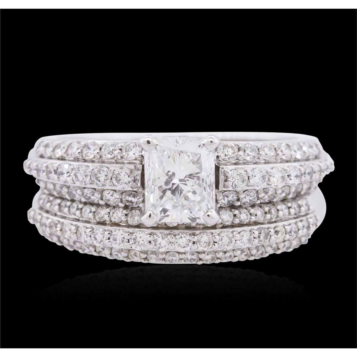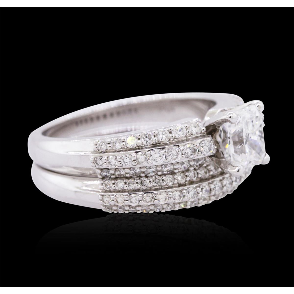 One wedding ring set featuring: 18KT white gold weighing 8.54 grams containing one diamond center stone with a total weight of 1.03ct and 103 round diamonds with a total weight of 0.81cts.
