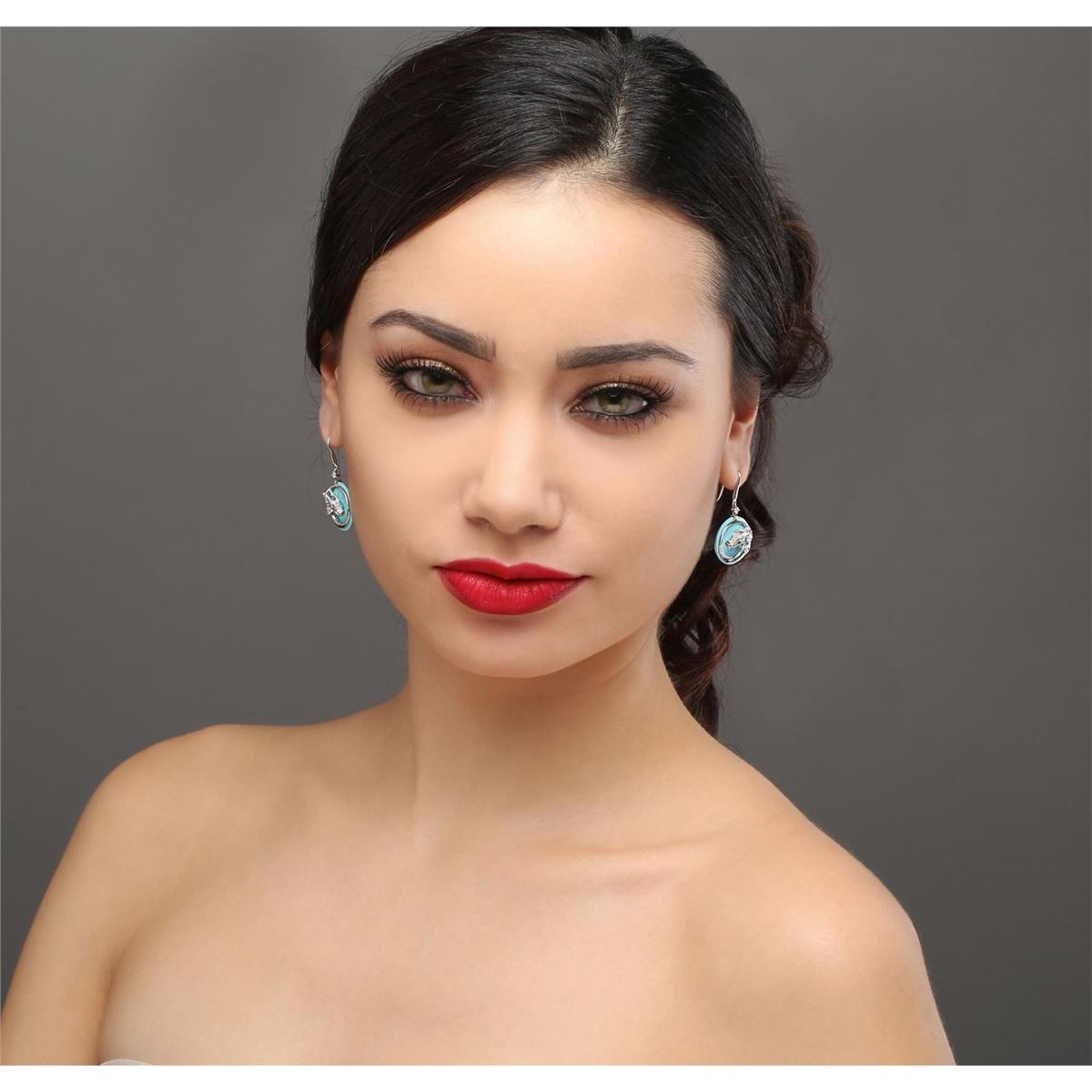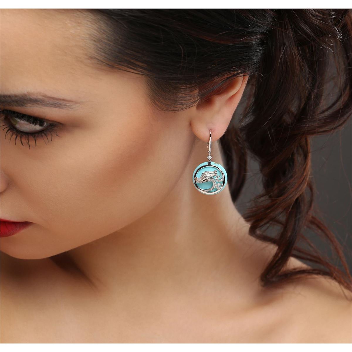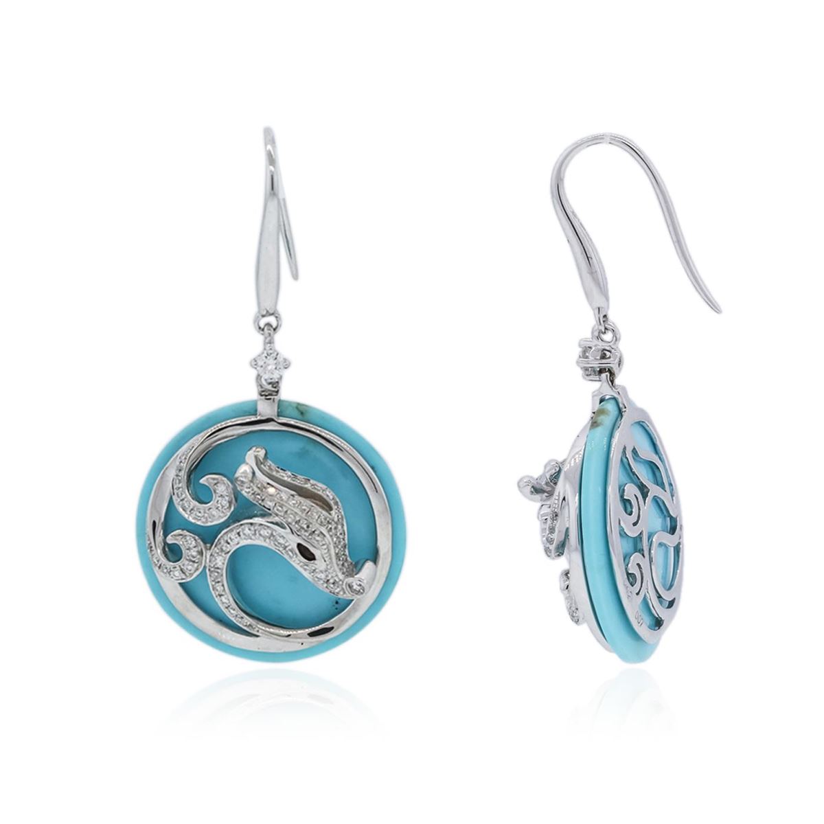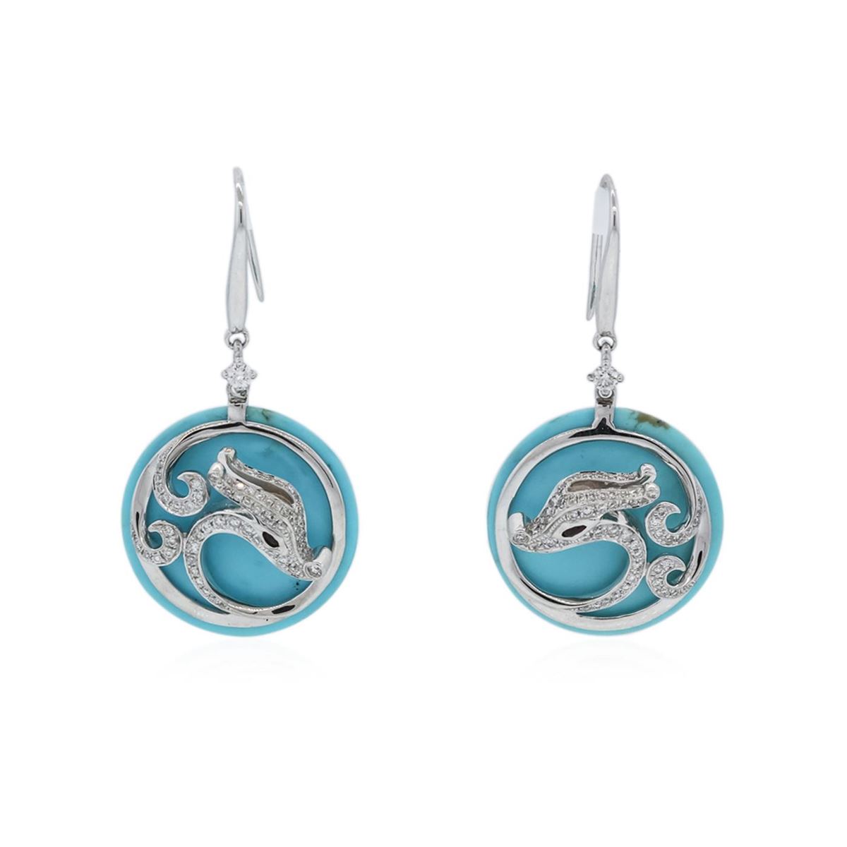 One pair of earrings featuring: 18KT white gold weighing 7.95 grams containing two turquoise with a total weight of 11.57ct and 128 round diamonds with a total weight of 0.42ct.