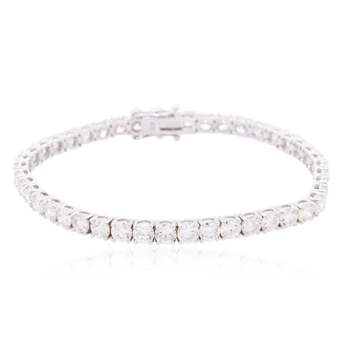 One electronically tested 18KT white gold ladies cast diamond tennis bracelet with a hidden box clasp with a bright polish finish. Measurements: 7.25" in length. Identified with markings of "750". Condition is new. Containing: Forty-Three prong set round brilliant cut diamonds, measuring 4.20 - 4.20 x 2.52mm (depth est.) approximate total Weight of 43 Stones = 11.66ct. Clarity: SI-2 to I-1. Color: I - J, Cut is Good. All diamonds are graded in the mounting, unless otherwise stated. Total Weight of Diamonds 11.66ct. Total Weight of Tennis Bracelet 14.20 grams. GGL Appraised at $40,290.00.