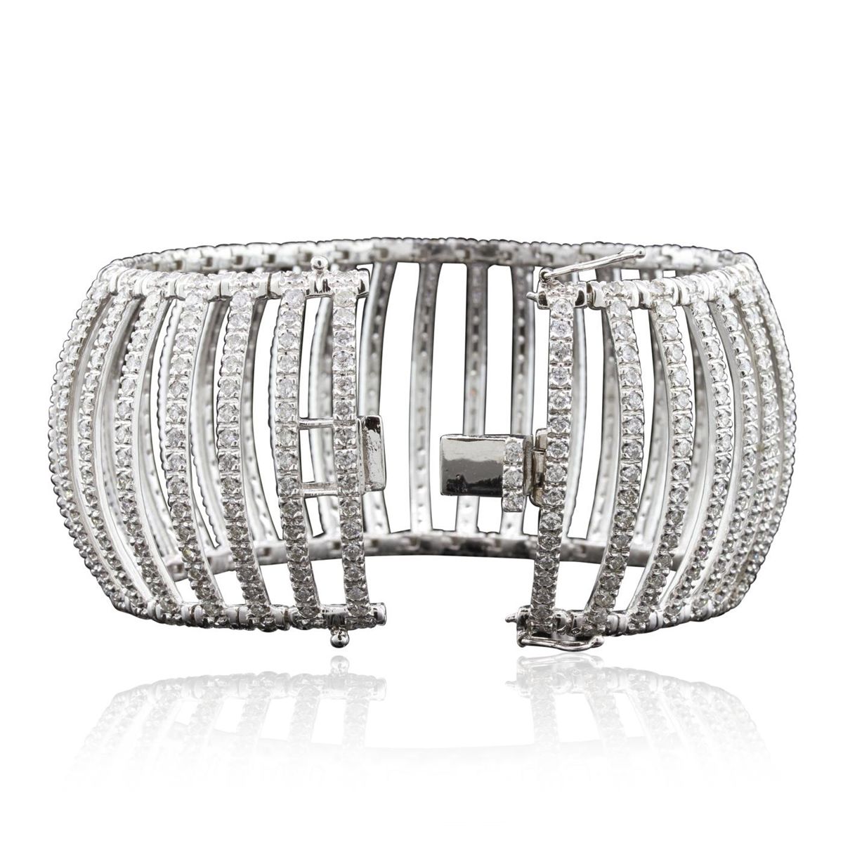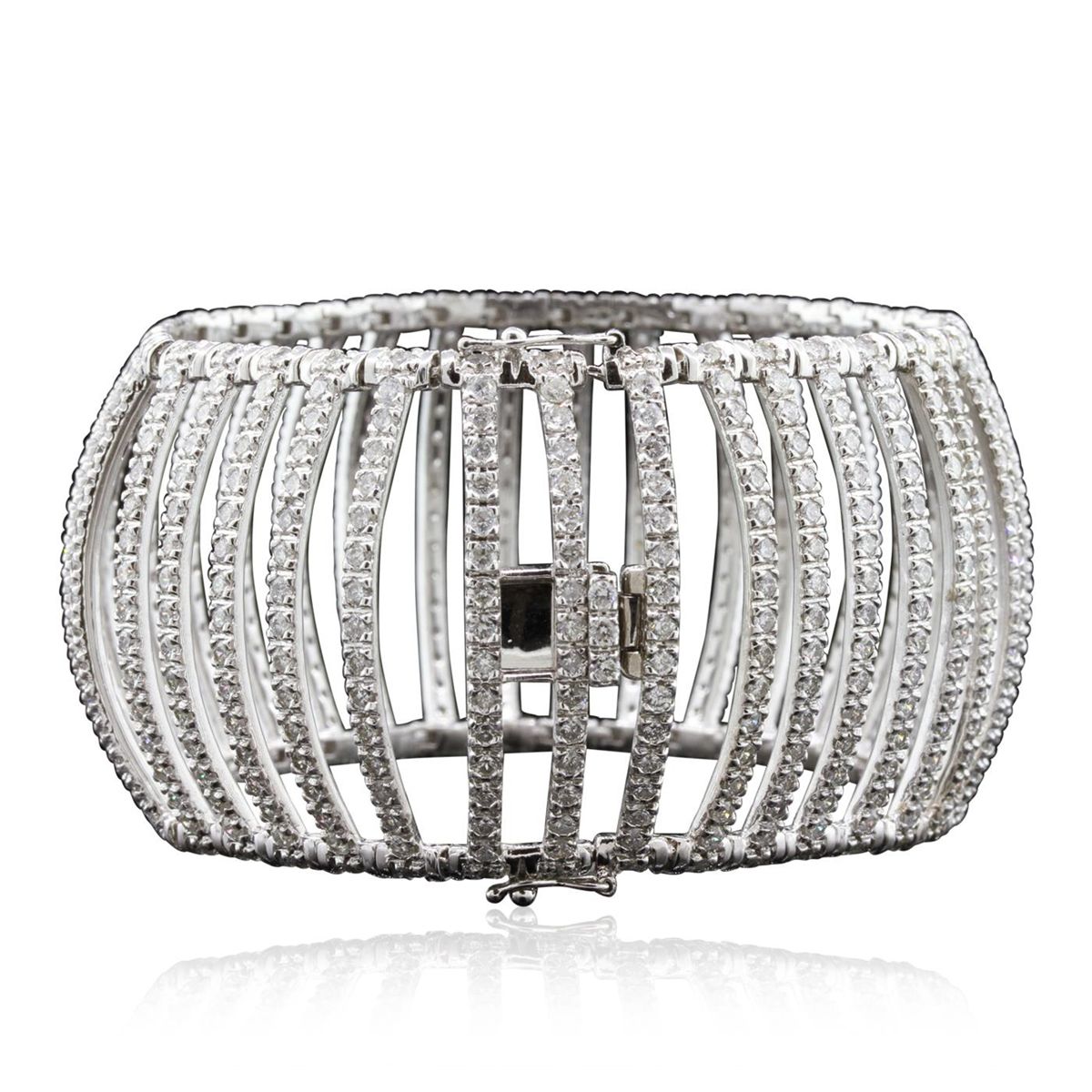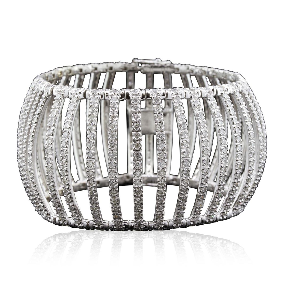 One electronically tested 18KT white gold Ladies combination cast & die struck fashion bracelet with a hidden box clasp with a bright polish finish. Identified with markings of "18K". Condition is new. Containing: Six Hundred Fifteen bead set round brilliant cut diamonds, measuring 1.70 - 1.70 x 1.02mm (depth est.) approximate total weight of 615 Stones = 12.60ct. Clarity of SI-2 to I-1, Color of H - I, Cut is Good. Total Weight of Diamonds 12.60ct. Total Weight of Bracelet 64.20gm. GGL Appraised at $54,275.00.
