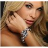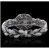 One pair electronically tested 18KT white, yellow and rose gold ladies cast & assembled diamond dangle earrings with omega backs. Each earring features a floral motif accented by a diamond encrusted diamond dangle. Bright polish finish. Trademark is AKMS. Identified with markings of "18K". Condition is new, good workmanship. Containing: Forty-Four prong set round brilliant cut diamonds approximate. Total Weight of 44 Stones = 0.79ct. Graded in the setting. Clarity: VVS-2 to VS-2. Color: G - I Two Hundred Seventy-Eight bead set round brilliant cut diamonds, measuring 1.20 - 1.10 x 0.69mm (depth est.) approximate. Total Weight of 278 Stones = 1.71ct. Color grade is an average for the group. Indications of laboratory irradiated enhanced color. Graded in the setting. Clarity: VS-1 to SI-1 One Thousand, Twelve bead set round brilliant cut diamonds, measuring 1.40 - 1.30 x 0.81mm (depth est.) approximate. Total Weight of 1012 Stones = 9.85ct. Color grade is an average for the group. Faint pink secondary color throughout. Graded in the setting. Clarity: VS-1 to SI-1. Color: H - J. Total Weight of Diamonds 12.35ct. Total Weight of Earrings 38.78gm. AIG Appraised at $55,290.00.