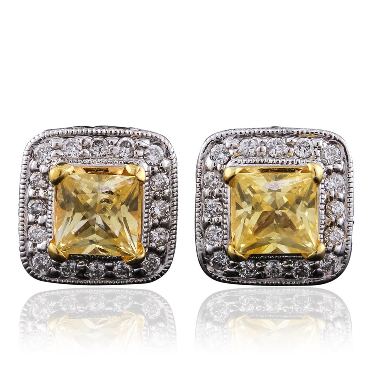 One pair of stud earrings featuring: 18KT White Gold with a total weight of 4.30 grams, Yellow Sapphires with a total weight of 2.00ctw, and Diamonds with a total weight of 0.78ctw.