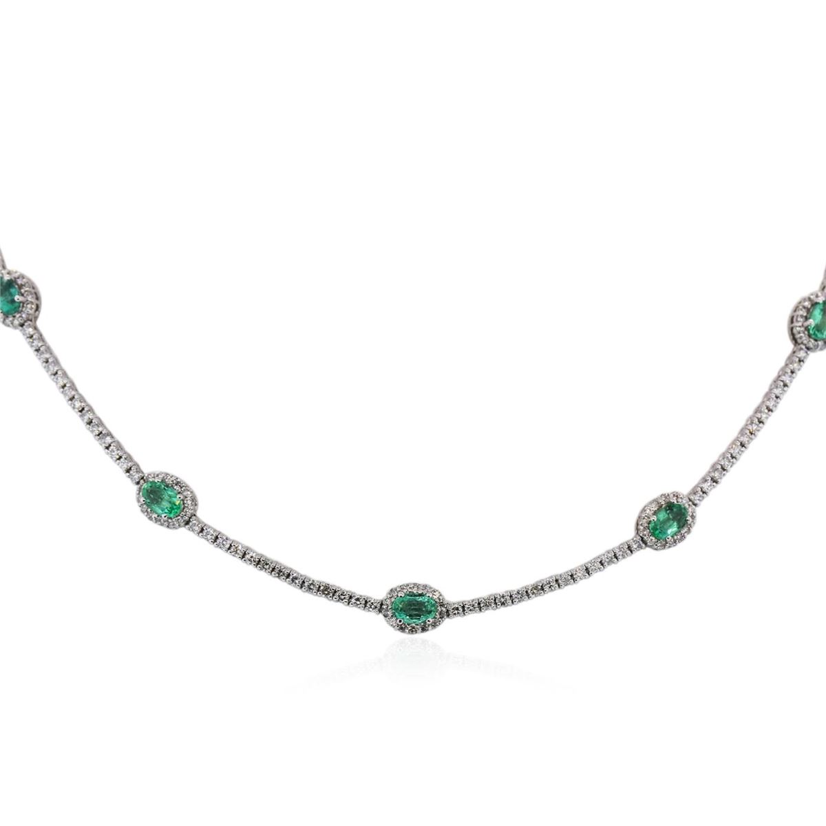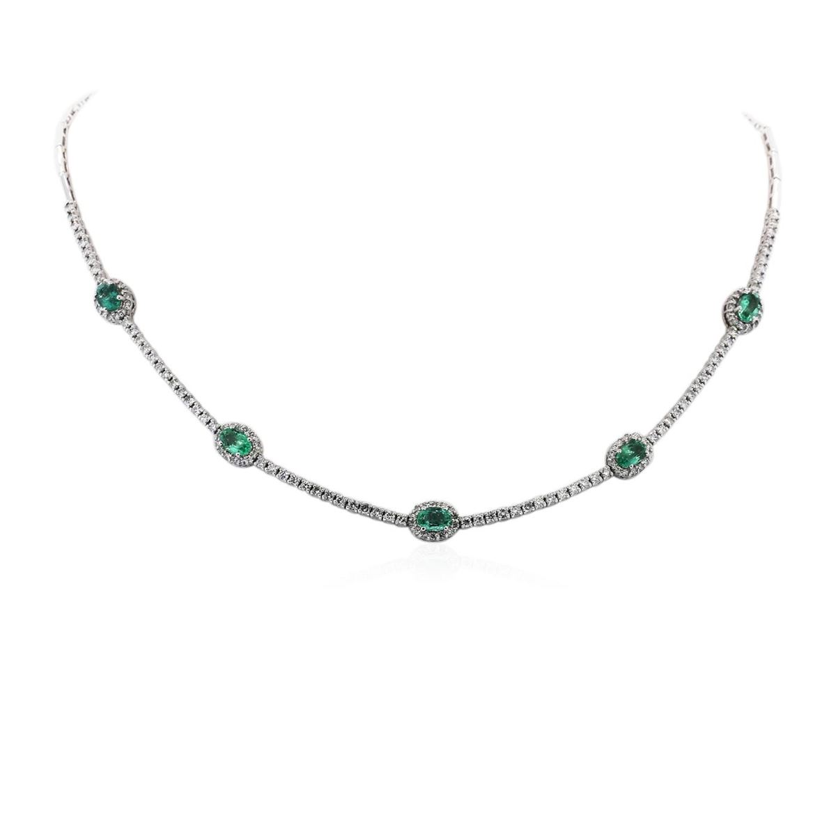 One necklace featuring: 18KT white gold weighing 17.00 grams containing five emeralds with a total weight of 2.03ct and 134 round diamonds with a total weight of 2.50ct.