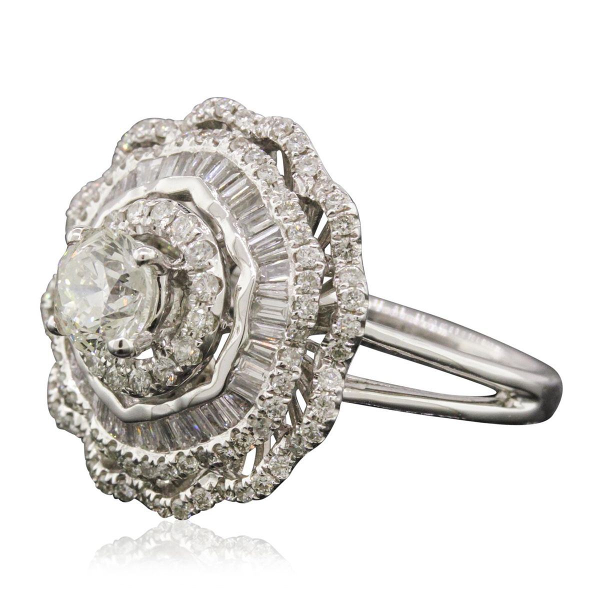 One ring featuring: 8.52 grams of 18KT white gold, (1) center diamond with a total weight of 1.00ct, (148) Baguette and round cut diamonds with a total weight of 1.25cts.