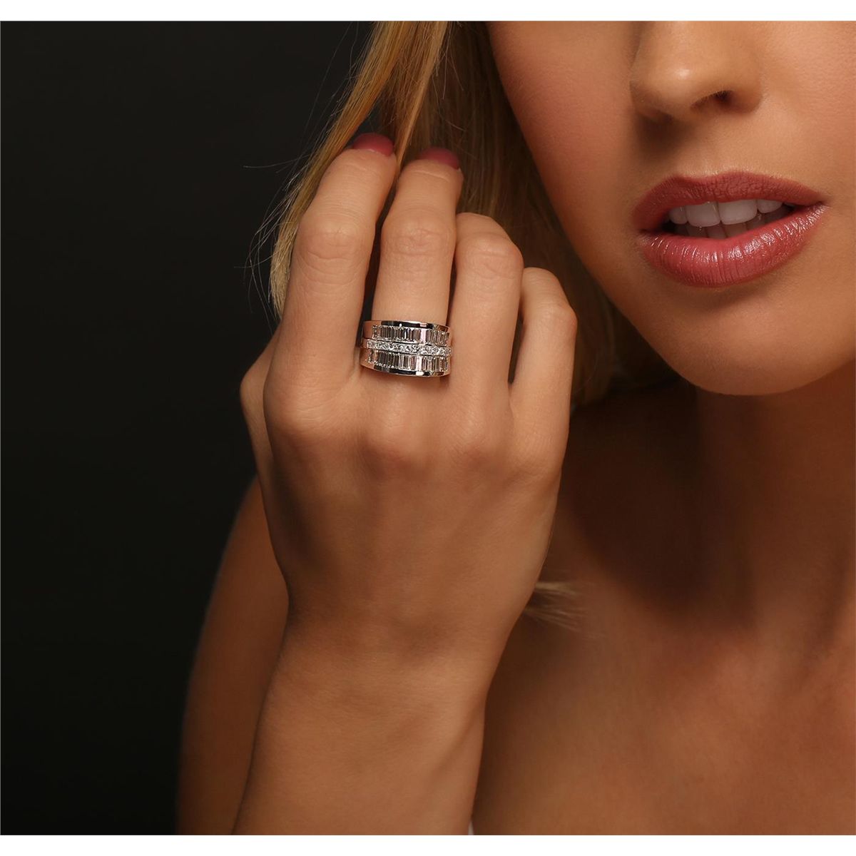 One electronically tested 18KT white gold Ladies combination cast & assembled fashion ring with a bright polish finish. Identified with markings of "18K". Condition is excellent. Containing: Twelve channel set princess cut diamonds, measuring 2.50 x 2.50 x 1.88mm (depth est.) approximate total weight of 12 Stones = 0.65ct. Clarity of VS-1 to VS-2, Color of I - J, Cut is Very Good. Thirty-Two channel set baguette cut diamonds, measuring 3.50 x 1.50 x 1.28mm (depth est.) approximate total weight of 32 Stones = 1.72ct. Clarity of VS-1, Color of H - I, Cut is Very Good. Total Weight of Diamonds 2.37ct. Total Weight of Ring 17.90gm. GGL Appraised at $18,200.00.