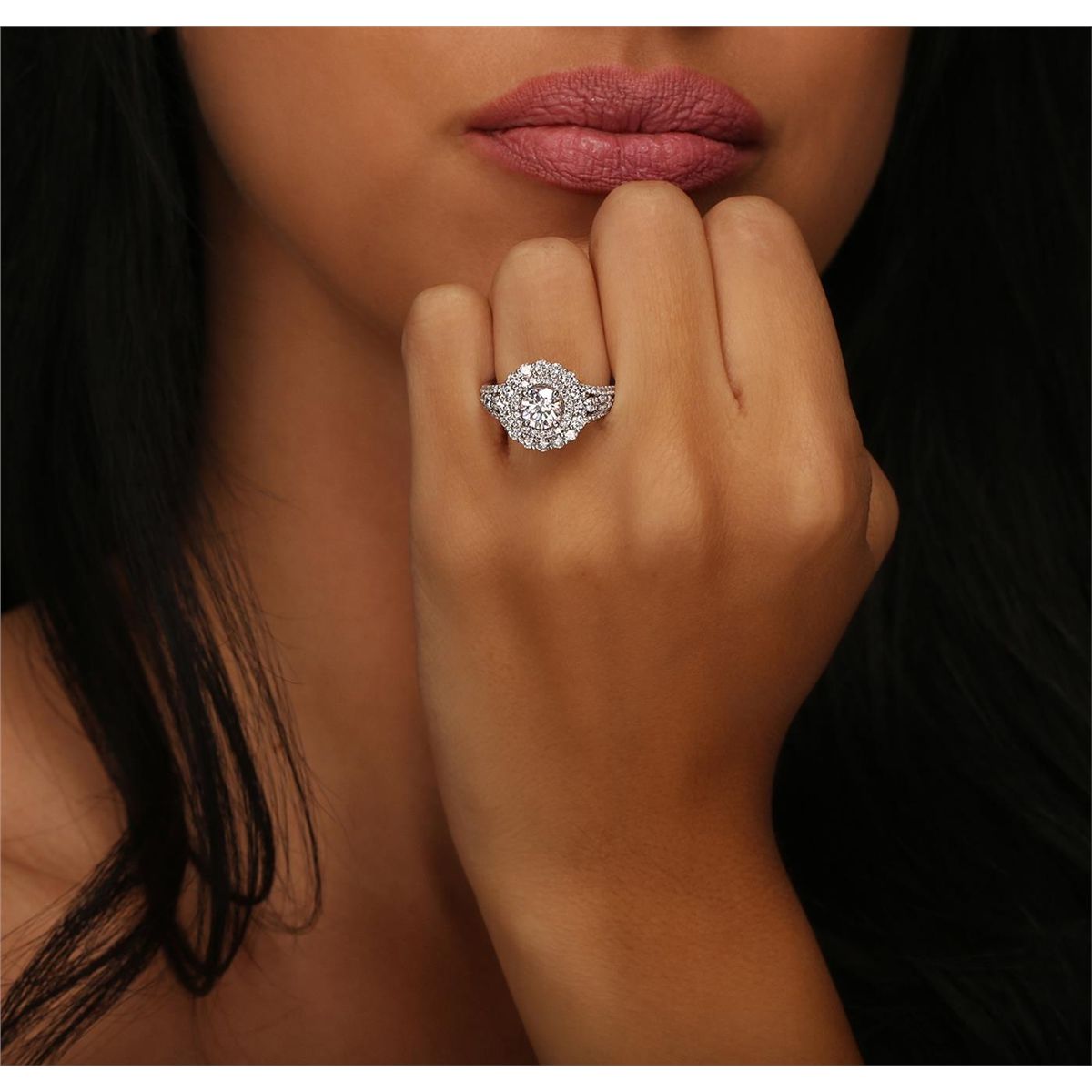 One electronically tested 18KT white gold Ladies combination cast & assembled engagement ring with a bright polish finish. Condition is new. Containing: One prong set round brilliant cut diamond, measuring 6.44 - 6.34 x 4.00mm (depth est.) approximate weight of 1.01ct. Clarity: SI-2. Color: D, Cut is Very Good. EGLUSA #US 9057411102D. Sixteen prong set round brilliant cut diamonds, measuring 2.30 - 2.30 x 1.38mm (depth est.) approximate. Total Weight of 16 Stones = 0.71ct. Clarity: VS-2 to SI-1. Color: I - J, Cut is Very Good. Six prong set round brilliant cut diamonds, measuring 2.10 - 2.10 x 1.26mm (depth est.) approximate. Total Weight of 6 Stones = 0.20ct. Clarity: VS-2 to SI-1. Color: I - J, Cut is Very Good. Sixty prong set round brilliant cut diamonds, measuring 1.30 - 1.30 x 0.78mm (depth est.) approximate. Total Weight of 60 Stones = 0.48ct. Clarity: SI-1 to SI-2. Color: I - J, Cut is Good. Total Weight of Diamonds 2.41ct. Total Weight of Ring 6.60 grams. GGL Appraised at $32,790.00.