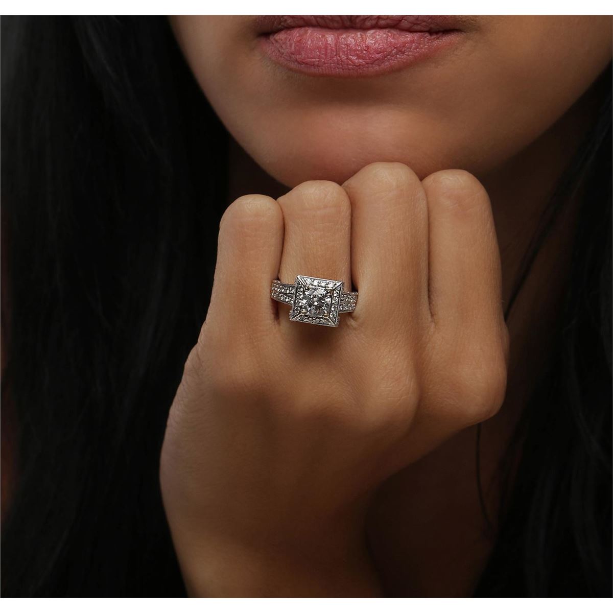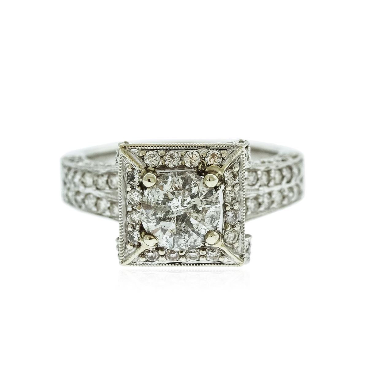 One electronically tested 18KT white gold ladies cast diamond unity ring. The featured diamond is set within a stylized diamond bezel supported by an elaborate diamond set under gallery and shoulders, completed by a three millimeter wide band. Bright polish finish with milgrain detailing throughout. Identified with markings of "18K 750". Condition is good. Containing: One prong set round brilliant cut diamond, measuring 6.60 - 6.55 x 4.00mm (depth est.) approximate weight of 1.15ct. Graded in the setting. Clarity: I-1 . Color: 60.9%. Table 57.8%. One Hundred Four bead & bezel set round brilliant cut diamonds, measuring 1.60 - 1.30 x 0.87mm (depth est.) approximate total weight of 104 Stones = 1.30ct. Graded in the setting. Clarity: VS-1 to SI-1. Color: H - J. Total Weight of Diamonds 2.45ct. Total Weight of Unity Ring 7.81 grams. AIG Appraised at $20,865.00.