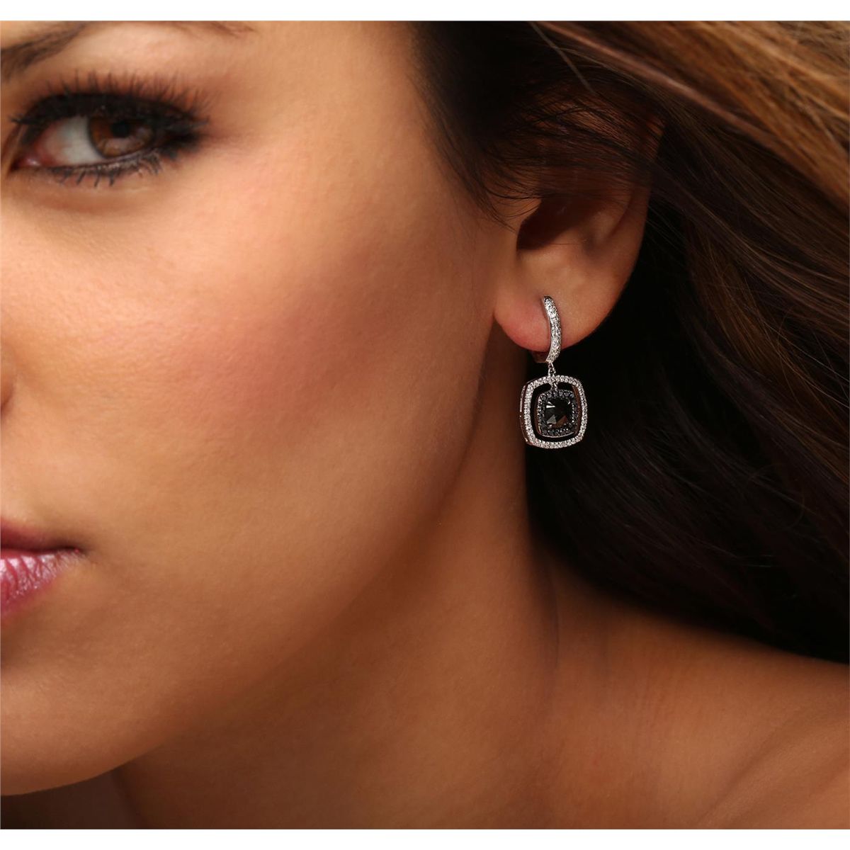 One pair of 18KT white gold earrings containing two natural cushion rose cut fancy black diamonds, enhanced for color, with a total weight of 1.78ct. The earrings also contain black side stones: fancy black (color enhanced), and white side stone: H-I / SI3-I1 weighing 0.29ct and 0.43ct respectively. Total weight of the earrings is 7.00 grams. EGL Appraised at $3,550.00.