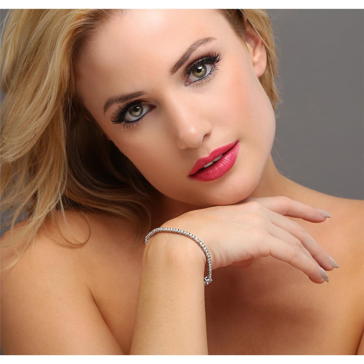 One electronically tested 18KT white gold ladies cast & assembled diamond tennis bracelet with a bright polish finish. Seven inch length bracelet composed of a flexible ribbon of diamonds, terminating in a diamond floret clasp with safety bar. Identified with markings of "18K". Condition is new, good workmanship. Tennis bracelets & necklaces got their unusual name from an incident involving the U.S. professional tennis player Chris Evert during a tennis match in the 1980's. Evert had been wearing an expensive diamond bracelet, an inline string of individually-set diamonds. Previously these bracelets were known as eternity bracelets. When the clasp snapped during play, she asked the officials to stop the tennis match until the bracelet could be found. Since that day, bracelets and necklaces featuring an inline string of diamonds have been called tennis bracelets and tennis necklaces. Containing: Seventy-Eight prong and bezel set round brilliant cut diamonds, measuring 2.10 - 2.00 x 1.23mm (depth est.) approximate total weight of 78 Stones = 2.55ct. Graded in the setting. Clarity: SI-1 to I-1. Color: G - I. Total Weight of Diamonds 2.55ct. Total Weight of Tennis Bracelet 13.45 grams. AIG Appraised at $9,885.00.