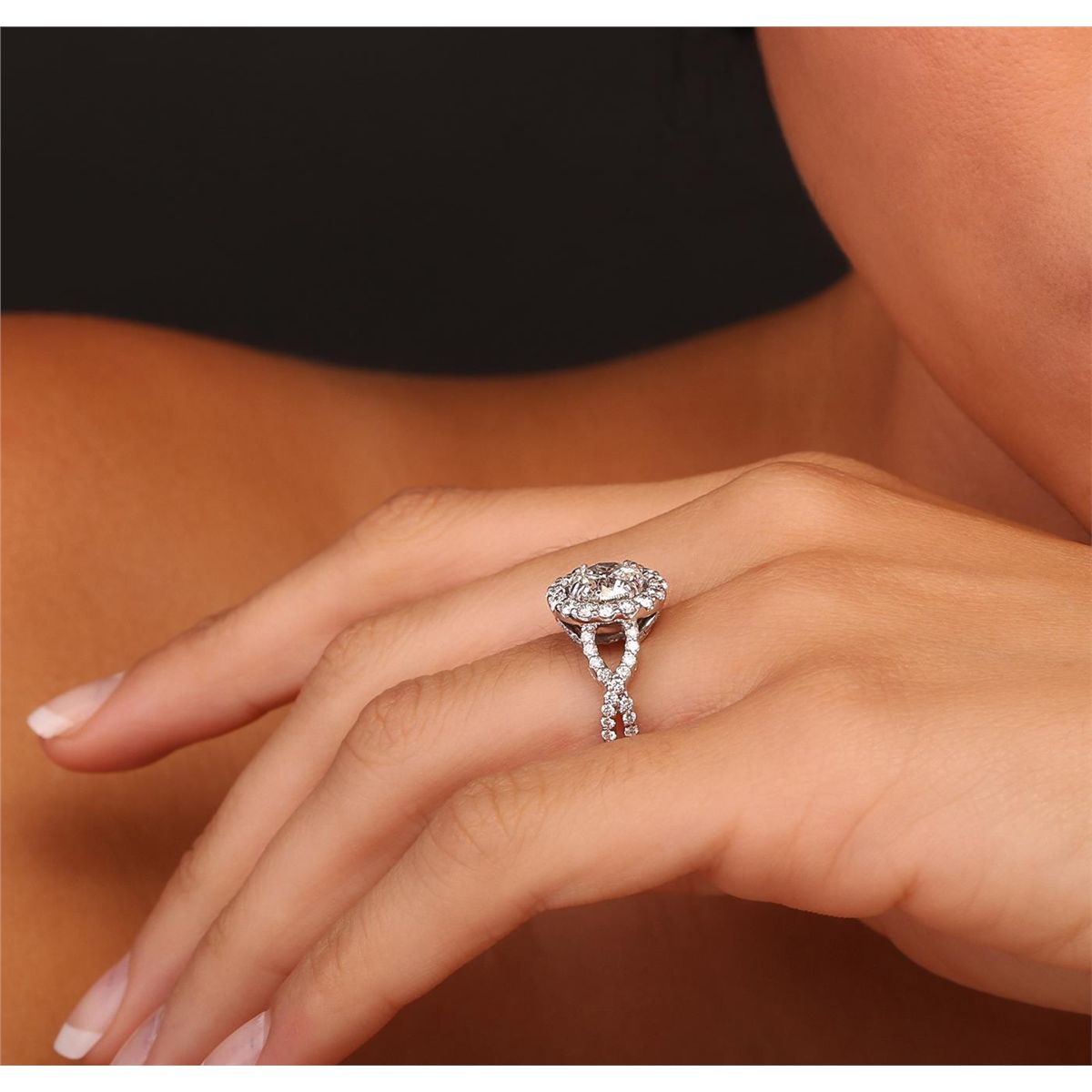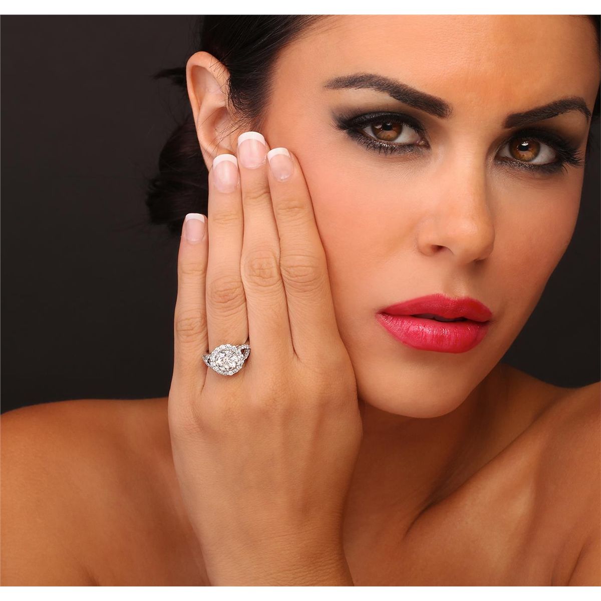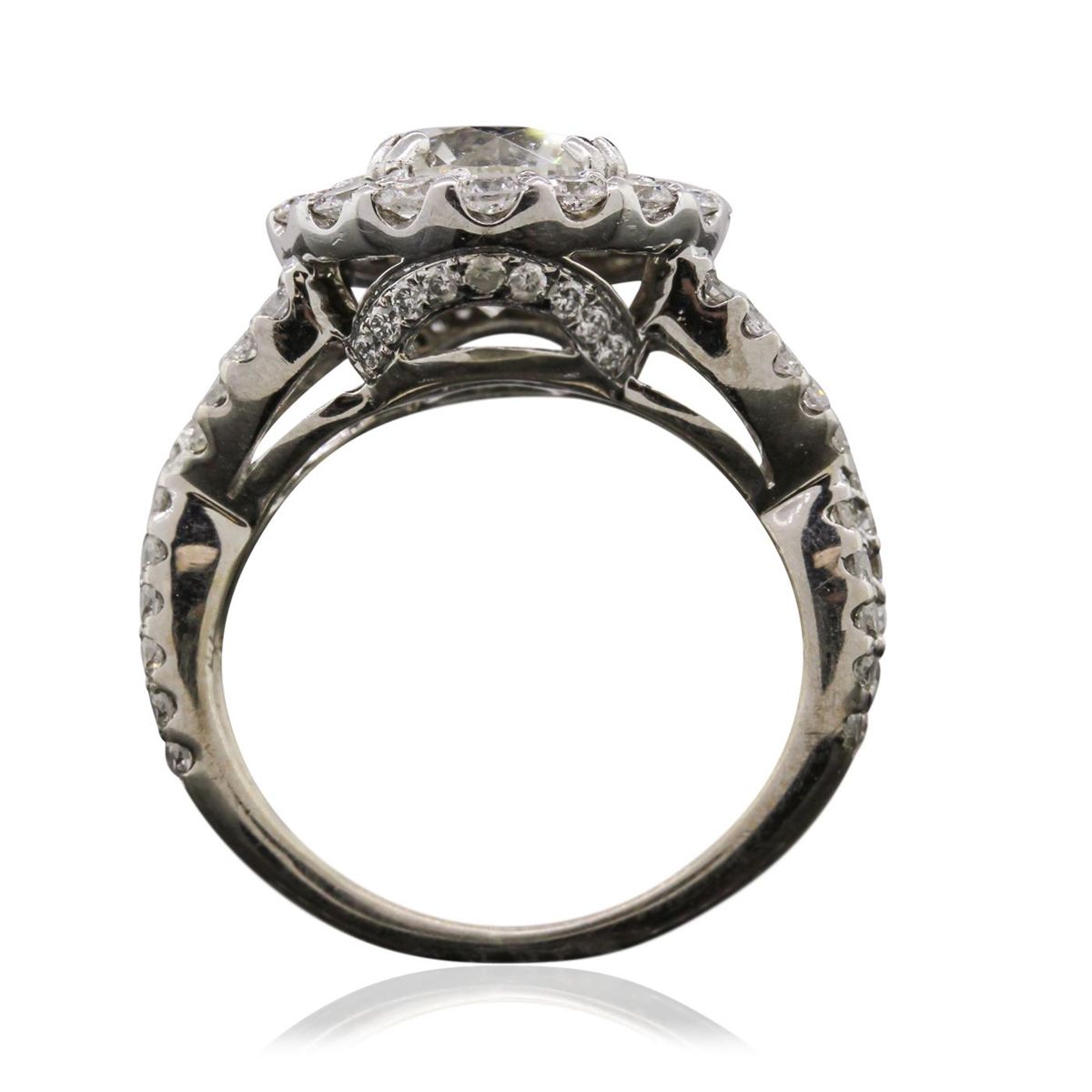 One electronically tested 18KT white gold Ladies combination cast & assembled engagement ring with a bright polish finish. Condition is new. Identified with markings of "750". Containing: One prong set round brilliant cut diamond, measuring 8.10 - 8.10 x 4.70mm (depth est.) approximate weight of 1.88ct. Clarity: I-2. Color: J, Cut is Good. Fifty-Six prong set round brilliant cut diamonds, measuring 1.90 - 1.50 x 1.02mm (depth est.) approximate. Total Weight of 56 Stones = 0.70ct. Clarity: SI-2 to I-1. Color: K, Cut is Good. Total Weight of Diamonds 2.58ct. Total Weight of Engagement Ring 6.00 grams. GGL Appraised at $22,260.00.