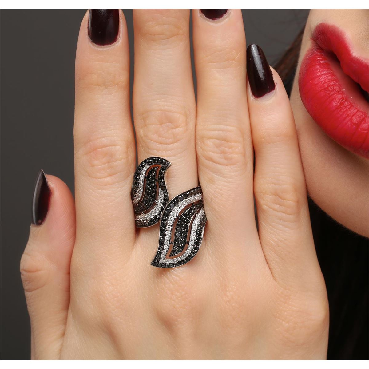 One ring featuring: 18KT white gold weighing 8.40 grams containing round black and white diamonds with a total weight of 2.60ct.