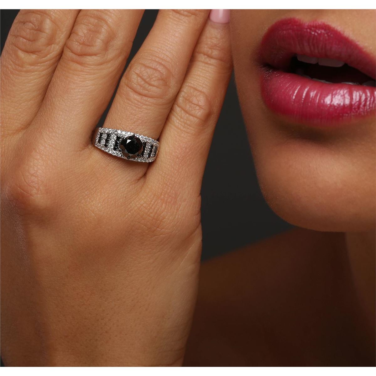 One ring featuring: 18KT white gold weighing 5.23 grams containing one black diamond with a total weight of 1.80ct, 16 black diamonds with a total weight of 0.25cts, and 46 round cut diamonds with a total weight of 0.56cts.