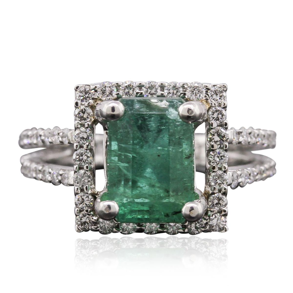 One electronically tested 18KT white gold Ladies combination cast & assembled ring with a bright polish finish. Condition is new. Identified with markings of "18K". Containing: One prong set emerald standard step cut natural emerald, measuring 9.30 x 6.50 x 6.40mm, approximate weight of 2.84ct., clarity is heavily included, type III, medium, very slightly grayish, green color, (GIA G 5/3), cut is good. Colored gemstones are presumed to have been subjected to commonly used color/clarity enhancement processes. Seventy-Six prong set round brilliant cut diamonds, measuring 1.30 - 1.30 x 0.78mm (depth est.) approximate total weight of 76 Stones = 0.61ct. Clarity of I-1 to I-2, Color of I - J, Cut is Good. Total Weight of Colored Stones 2.84ct. Total Weight of Diamonds 0.61ct. Total Weight of Ring 4.60 grams. GGL Appraised at $8,970.00.