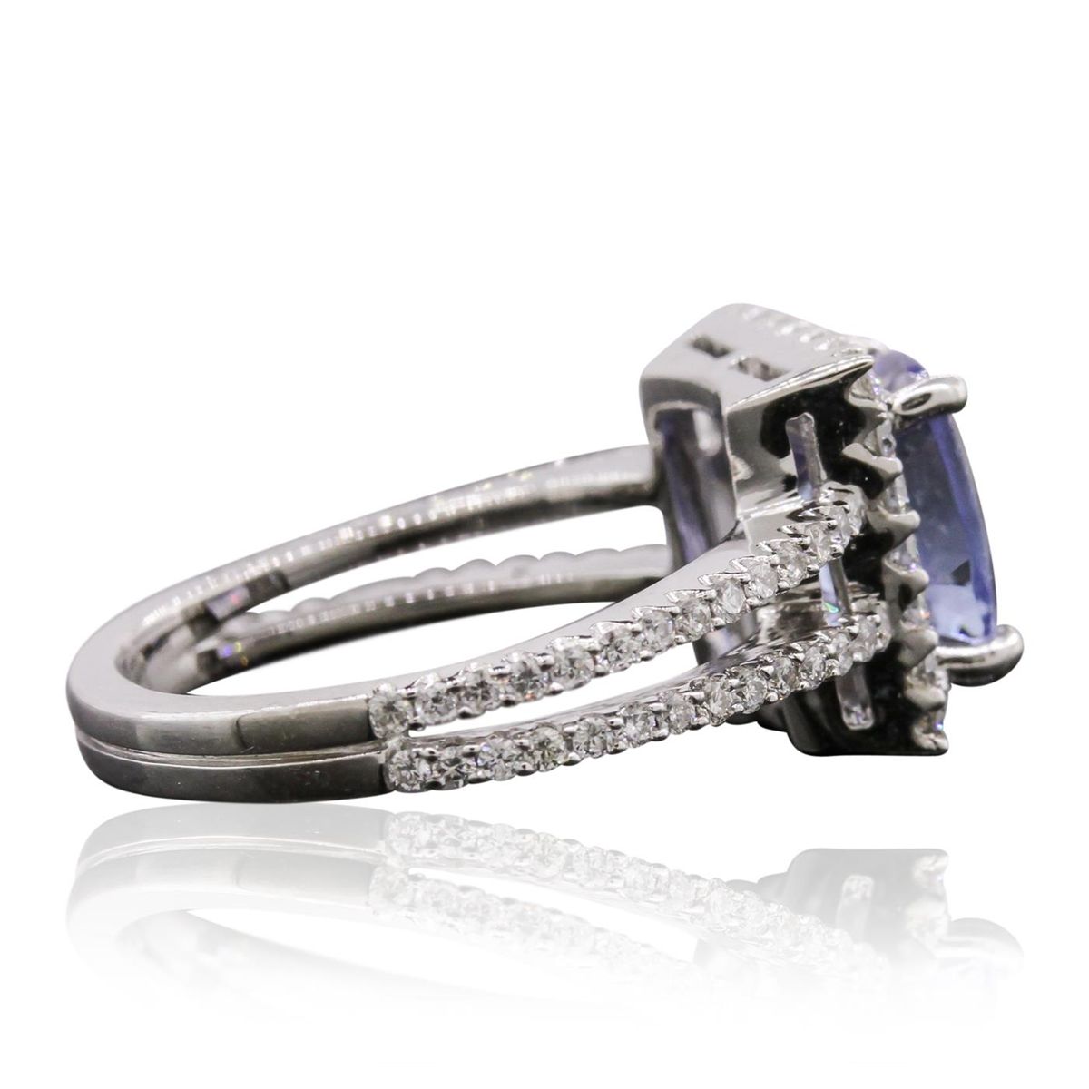 One electronically tested 18KT white gold Ladies combination cast & assembled ring with a bright polish finish. Condition is new. Identified with markings of "18K". Containing: One prong set emerald standard step cut natural emerald, measuring 9.30 x 6.50 x 6.40mm, approximate weight of 2.84ct., clarity is heavily included, type III, medium, very slightly grayish, green color, (GIA G 5/3), cut is good. Colored gemstones are presumed to have been subjected to commonly used color/clarity enhancement processes. Seventy-Six prong set round brilliant cut diamonds, measuring 1.30 - 1.30 x 0.78mm (depth est.) approximate total weight of 76 Stones = 0.61ct. Clarity of I-1 to I-2, Color of I - J, Cut is Good. Total Weight of Colored Stones 2.84ct. Total Weight of Diamonds 0.61ct. Total Weight of Ring 4.60 grams. GGL Appraised at $8,970.00.