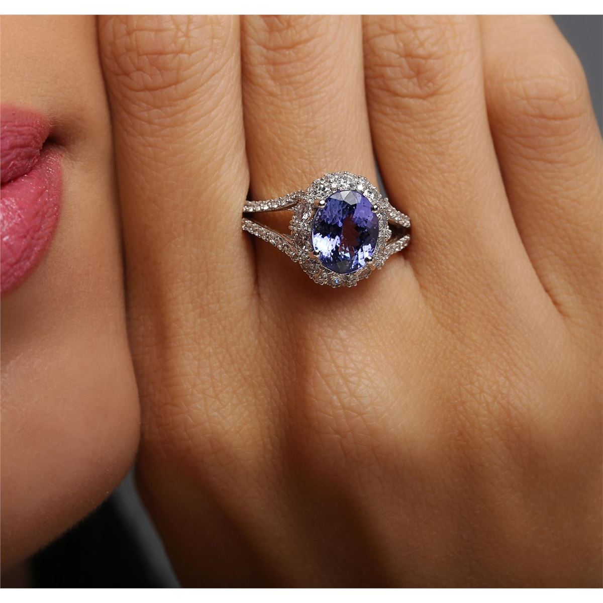 One ring featuring: 18KT white gold weighing 4.60 grams containing one tanzanite center stone with a total weight of 2.85ct and round cut diamonds with a total weight of 1.17cts.