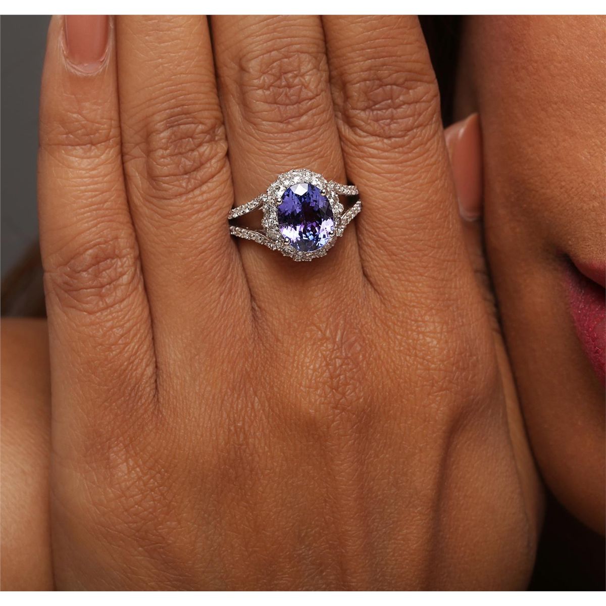 One ring featuring: 18KT white gold weighing 4.60 grams containing one tanzanite center stone with a total weight of 2.85ct and round diamonds with a total weight of 1.17cts.
