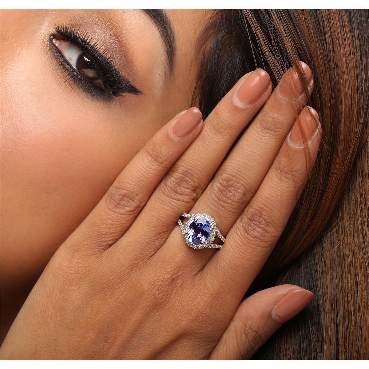 One ring featuring: 18KT white gold weighing 4.60 grams containing one tanzanite center stone with a total weight of 2.85ct and round diamonds with a total weight of 1.17cts.