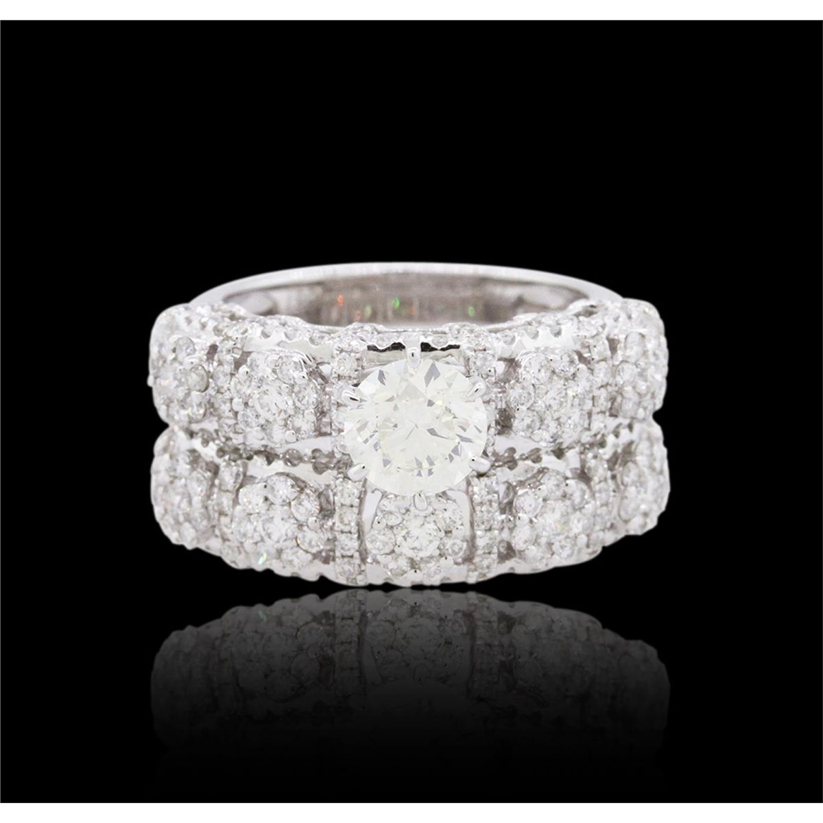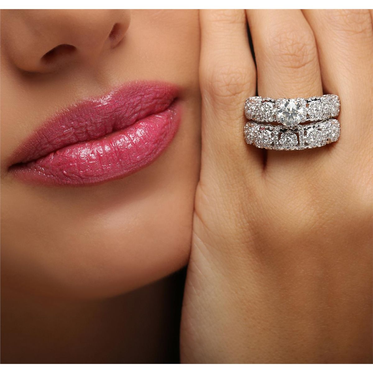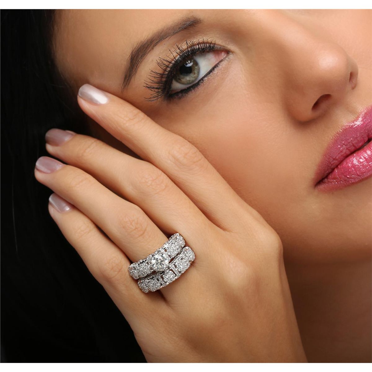One wedding ring set featuring: 18KT white gold weighing 11.00 grams containing one center diamonds with a total weight of 1.02ct and 252 round cut diamonds with a total weight of 1.84cts.