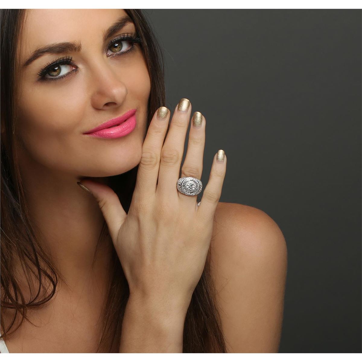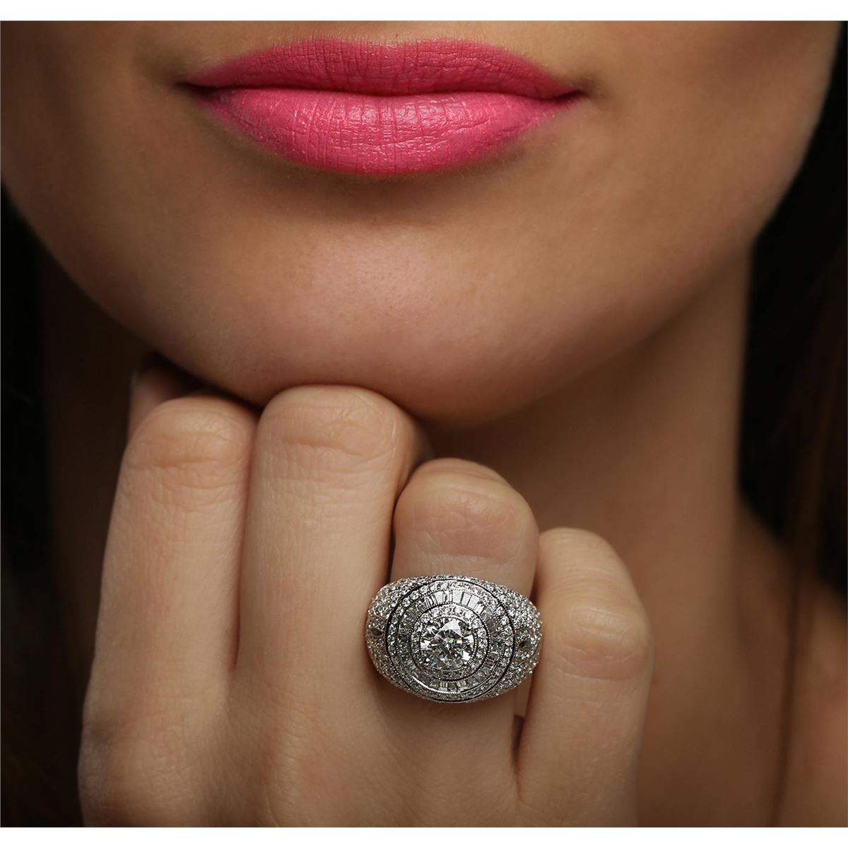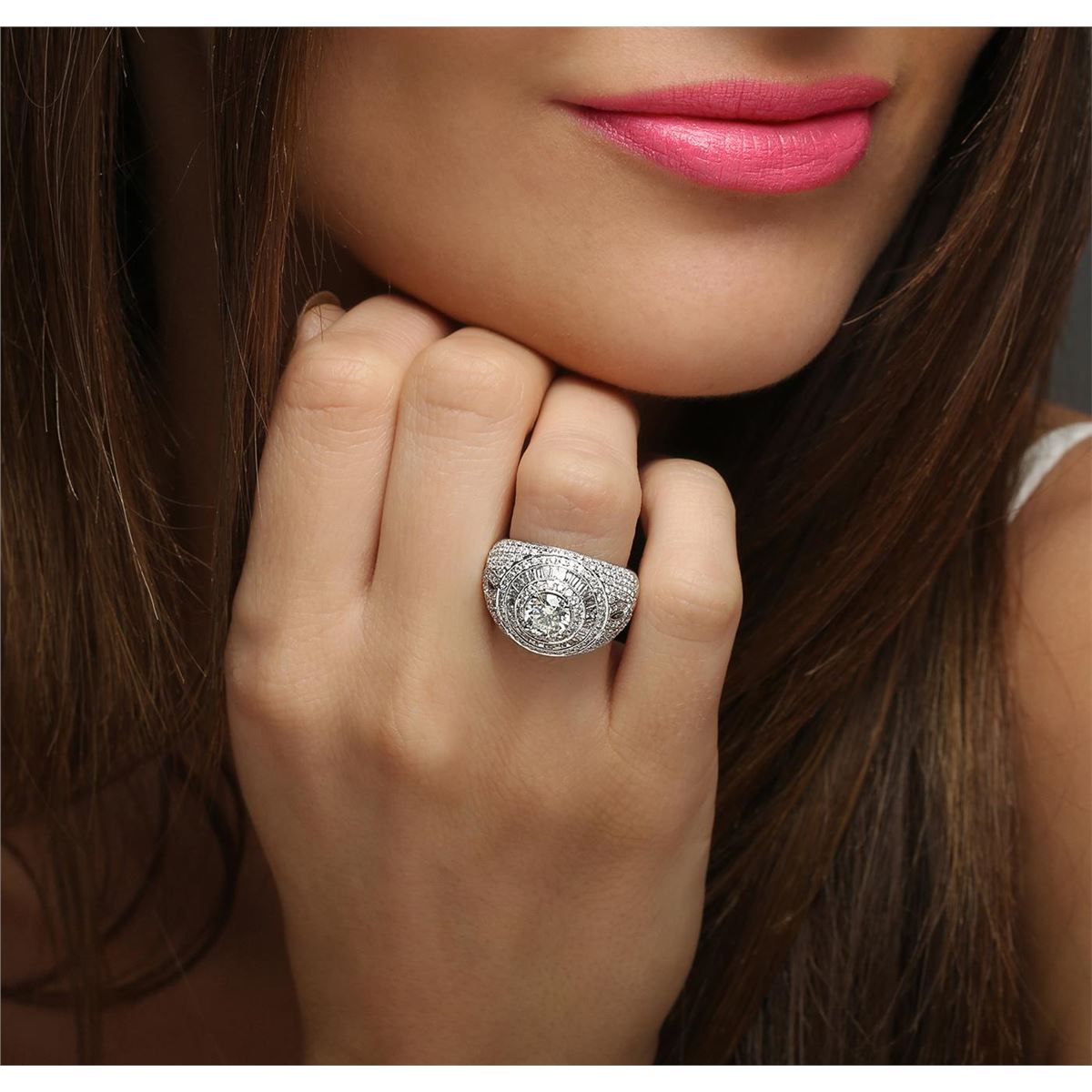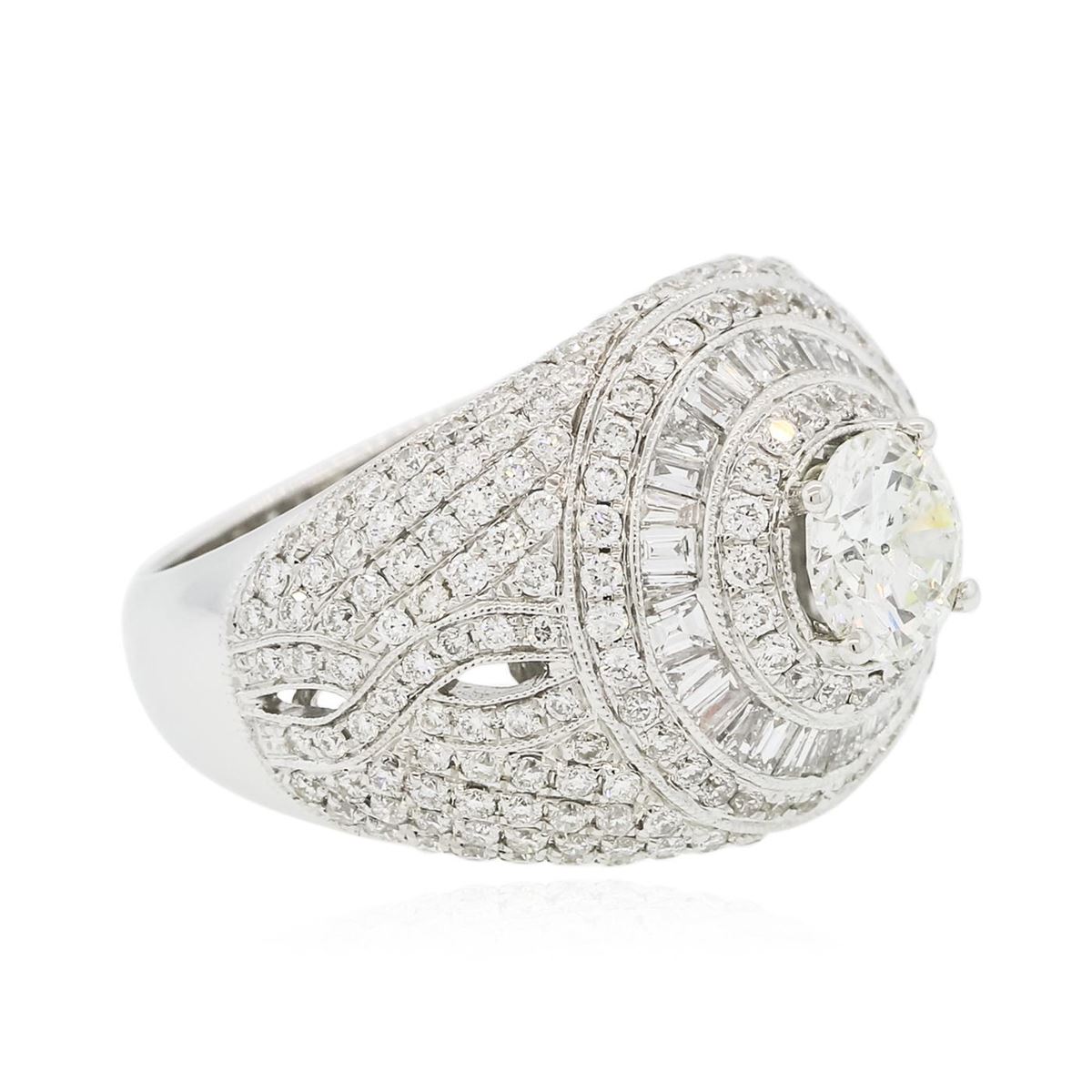 One electronically tested 18KT white gold ladies combination cast & assembled engagement ring with a bright polish finish. Identified with markings of "750". Condition is new. Containing: One prong set round brilliant cut diamond, measuring 6.38 - 6.35 x 3.82mm (depth est.) approximate weight of 0.94ct. Clarity: I-2. Color: J, Cut is Good. Two Hundred Twenty prong set round brilliant cut diamonds, measuring 1.10 - 1.10 x 0.66mm (depth est.) approximate total weight of 220 Stones = 1.44ct. Clarity: SI-2. Color: I - J, Cut is Good. Thirty channel set baguette cut diamonds, measuring 1.80 x 1.50 x 1.28mm (depth est.) approximate total weight of 30 Stones = 0.59ct. Clarity: VS-2. Color: I - J, Cut is Good. All diamonds are graded in the mounting, unless otherwise stated. Total Weight of Diamonds 2.97ct. Total Weight of Ring 10.80 grams. GGL Appraised at $17,400.00.