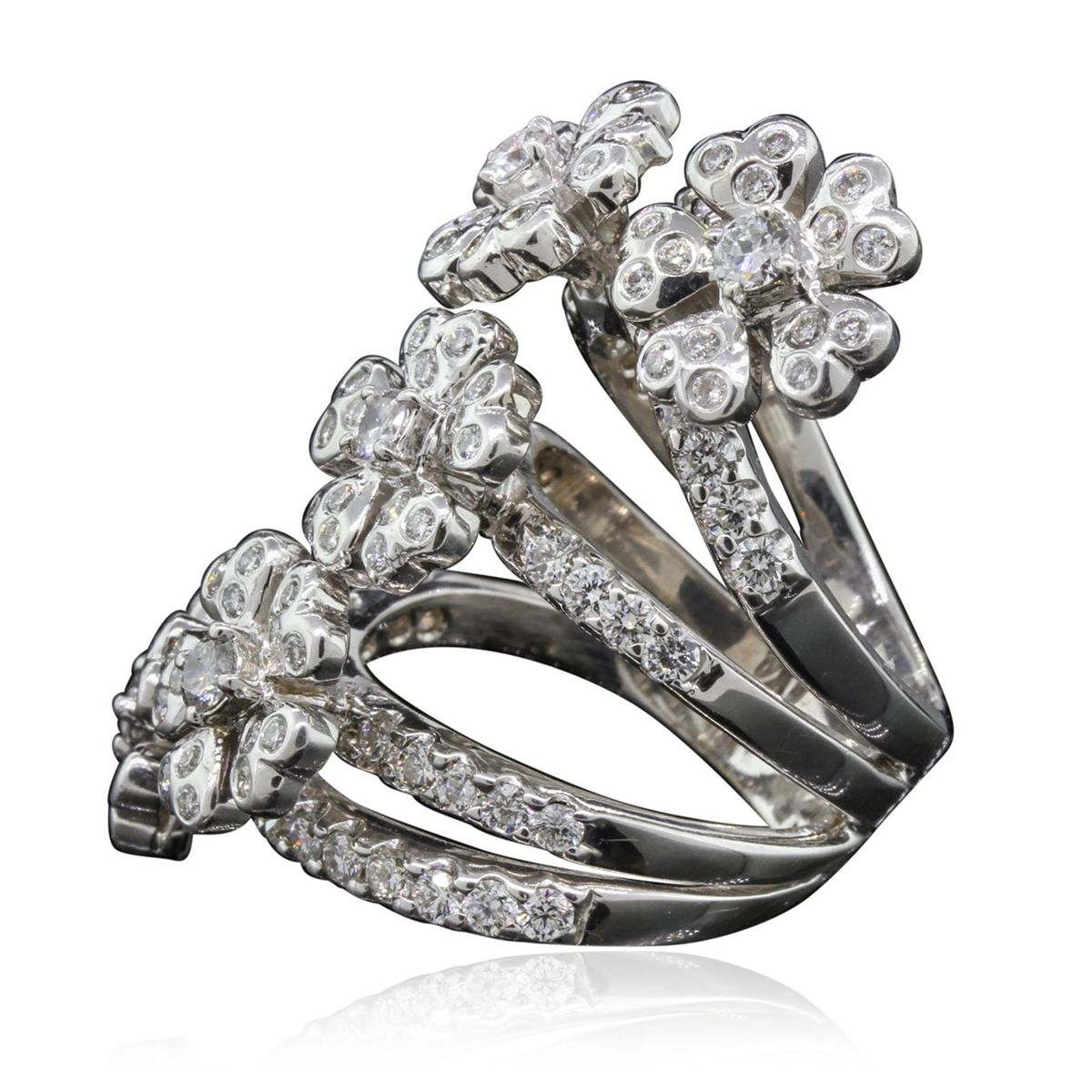 One electronically tested 18KT white gold Ladies combination cast & assembled fashion ring with a bright polish finish. Condition is new. Containing: Five prong set round brilliant cut diamonds, measuring 3.00 - 3.00 x 1.80mm (depth est.) approximate total weight of 5 Stones = 0.49ct. Clarity of SI-1 to SI-2, Color of H - I, Cut is Good. Seventy-Five bezel set round brilliant cut diamonds, measuring 1.50 - 1.50 x 0.90mm (depth est.) approximate total weight of 75 Stones = 0.92ct. Clarity of SI-1 to SI-2, Color of I - J, Cut is Good. Forty-Eight prong set round brilliant cut diamonds, measuring 2.10 - 2.10 x 1.26mm (depth est.) approximate total weight of 48 Stones = 1.63ct. Clarity of SI-1 to SI-2, Color of H - I, Cut is Good. Total Weight of Diamonds 3.04ct. Total Weight of Ring 25.10gm. GGL Appraised at $25,210.00.