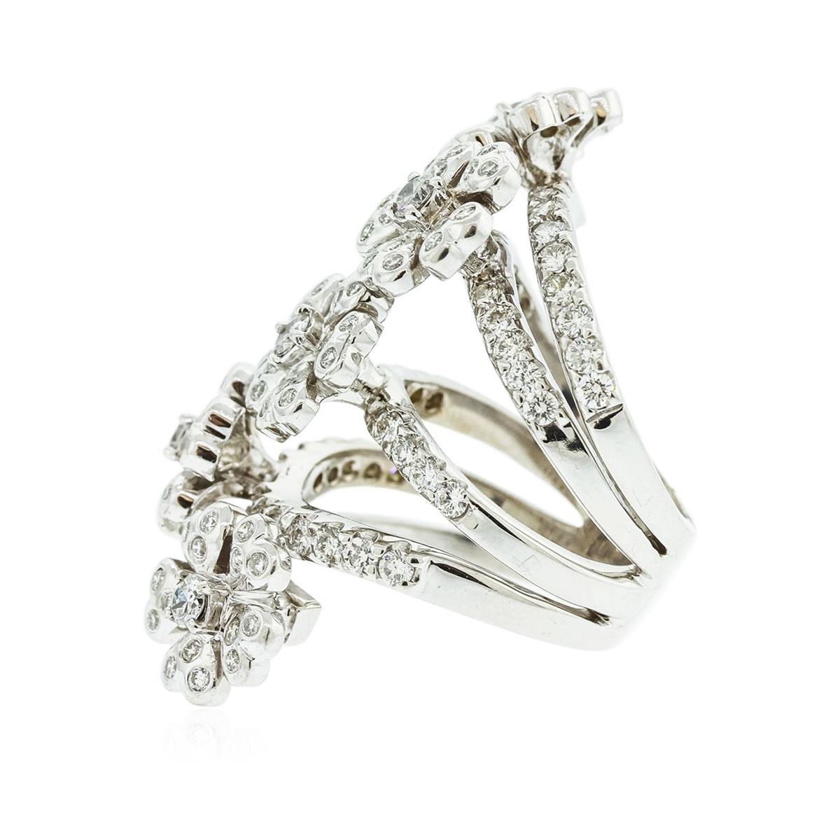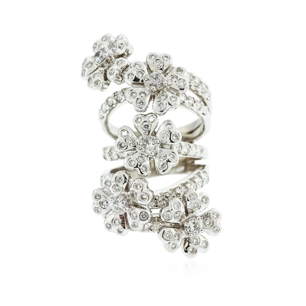 One electronically tested 18KT white gold Ladies combination cast & assembled fashion ring with a bright polish finish. Condition is new. Containing: Five prong set round brilliant cut diamonds, measuring 3.00 - 3.00 x 1.80mm (depth est.) approximate total weight of 5 Stones = 0.49ct. Clarity of SI-1 to SI-2, Color of H - I, Cut is Good. Seventy-Five bezel set round brilliant cut diamonds, measuring 1.50 - 1.50 x 0.90mm (depth est.) approximate total weight of 75 Stones = 0.92ct. Clarity of SI-1 to SI-2, Color of I - J, Cut is Good. Forty-Eight prong set round brilliant cut diamonds, measuring 2.10 - 2.10 x 1.26mm (depth est.) approximate total weight of 48 Stones = 1.63ct. Clarity of SI-1 to SI-2, Color of H - I, Cut is Good. Total Weight of Diamonds 3.04ct. Total Weight of Ring 25.10gm. GGL Appraised at $25,210.00.