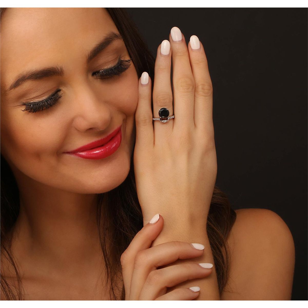 One electronically tested 18KT white gold ladies cast & assembled black and white diamond ring with a bright and milgrain finish. Condition is new, good workmanship.The featured black diamond is accented with a diamond ribbon, supported by diamond set shoulders and completed by a two millimeter wide band. Identified with markings of ""18K"". Containing: One prong set round brilliant cut diamond, measuring 9.15 - 9.15 x 5.75mm exact weight 2.71ct. Indications of multiple laboratory enhancements. The specific gravity of black diamond is 3.120 to 3.165. Diamond tester results are non reactive. Graded loose. Clarity Déclassé‚ Color Fancy Black; Irradiated Depth 62.8% Table 65.5%. Twenty-Nine bead set round brilliant cut diamonds, measuring 1.50 - 1.40 x 0.87mm (depth est.) approximate total weight of 29 Stones = 0.37ct. Graded in the setting. Clarity SI-1 to I-1 Color G - I. Total Weight of Diamonds 3.08 ct. Total Weight of Ring 4.10 grams. AIG Appraised at $4,265.00.