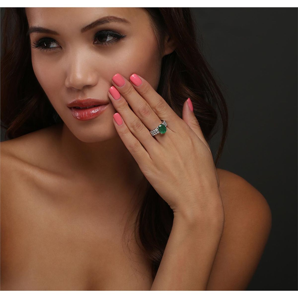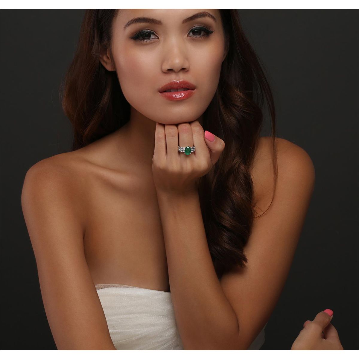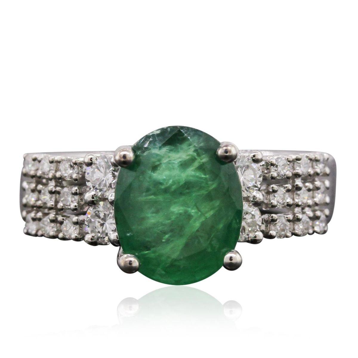 One ring featuring: 18KT white gold with a total weight of 6.20 grams, emerald with a total weight of 3.09ct, and diamonds with a total weight of 0.65ctw.